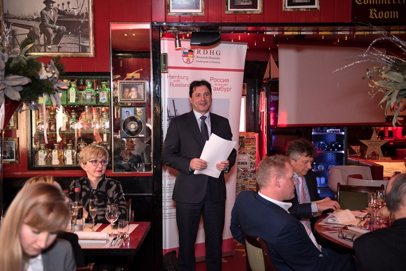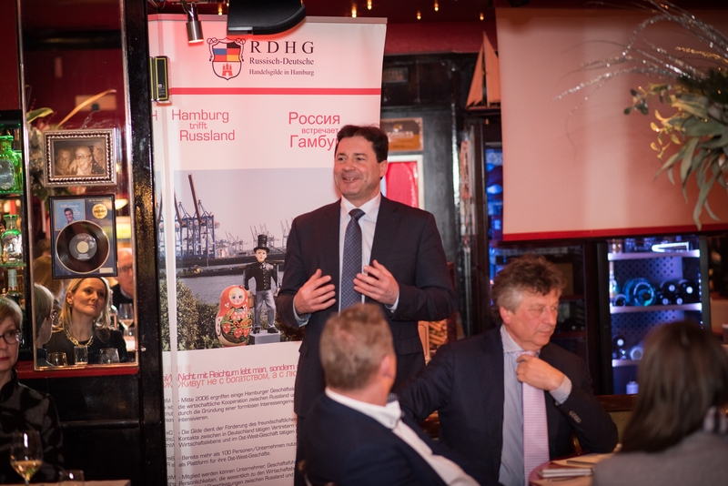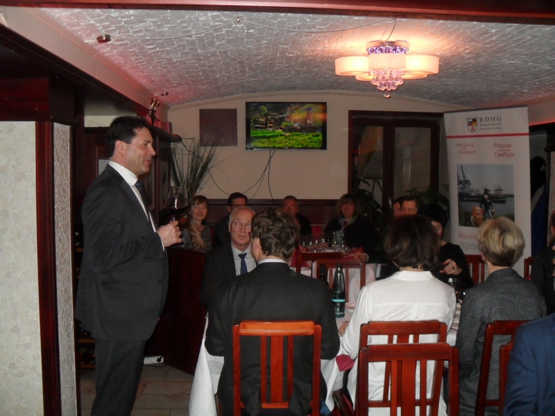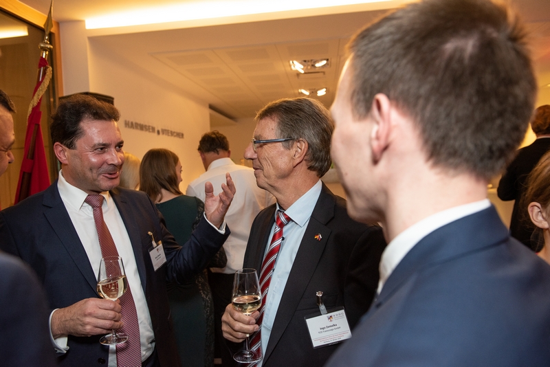 Über 100 Mitglieder und Gäste haben den neuen Generalkonsul der Russischen Föderation in Hamburg, Herrn Andrei Sharashkin, herzlich in der Hansestadt willkommen geheißen. Die Stimmung auf dem Wirtschaftsempfang in den Geschäftsräumen von Harmsen Utescher Rechtsanwalts- und Patentanwaltspartnerschaft mbB im Neuen Wall war sehr positiv. Das Grußwort von Seiten der Wirtschaft hielt die Hauptgeschäftsführerin der Handelskammer Hamburg, Frau Christi Degen. Ein besonderer Dank für die sehr großzügige Unterstützung des Wirtschaftsempfangs geht an unsere Mitglieder