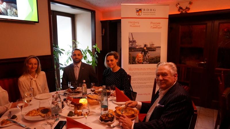 Der 2. Russland-Stammtisch des Jahres 2018 am Freitag, den 13. April stand unter dem Thema „Gesundheit“. Am Beginn des gemütlichen Miteinanders hörten wir zwei interessante Impulsvorträge vom Facharzt für Urologie und Andrologie in St. Petersburg, Rovschan Gadzhiyev, zur Organisation des Gesundheitswesens in Russland und von der Fachärztin für Dermatologie in Hamburg, Dr. Irina Izmaylova, mit Eindrücken aus dem deutschen Gesundheitssystem in den Augen eines russischen Arztes. Bei Livemusik genossen die 30 Teilnehmer im Anschluss das georgische Essen im Restaurant Suliko unseres Mitglieds Georg Welia und nutzten die Plattform für Gespräche und Diskussionen rund um Russland.