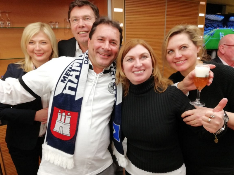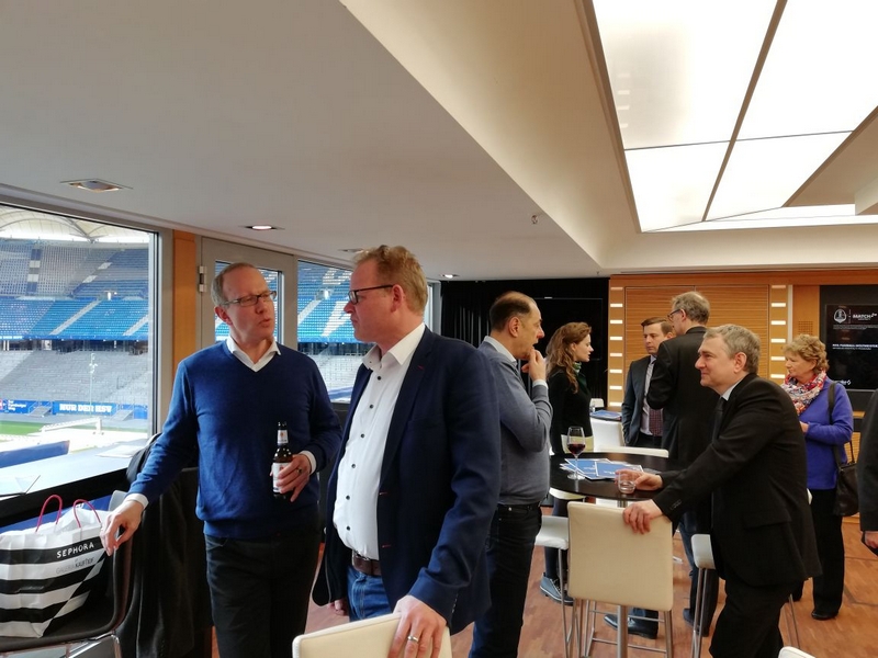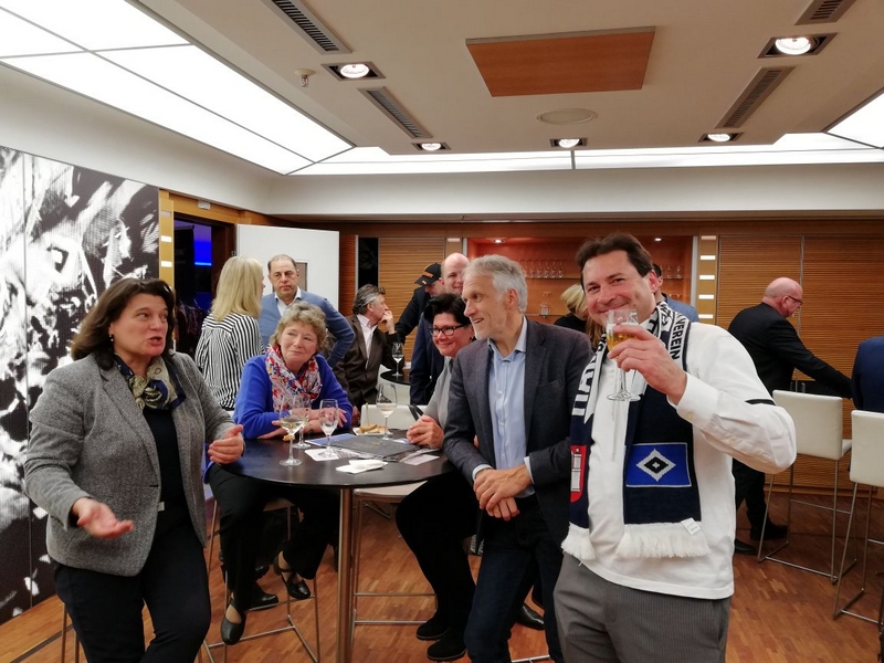 Es war eine große Freude, das Event „Business & Sports“ am 27. März 2018 im Hamburger Volksparkstadion von Handelskammer und Deutsch Russischer AHK mitzugestalten. Zahlreiche Gildemitglieder konnten sich in der Loge von Lagardére Sports davon überzeugen, wie viele Geschäftspotenziale rund um den Sport bestehen und wie wichtig Fußball als Kommunikationsbrücke über Grenzen und Länder hinweg ist. Eine Gesprächsrunde zur „Systemgastronomie im Sport“ mit der Firma DOVGAN, der Oettinger Brauerei und NORD EVENT schloss sich der Besichtigung des VIP-Bereichs des Volksparkstadions an. Das anschließende Get-together ermöglichte interessante Gespräche und Kontakte.