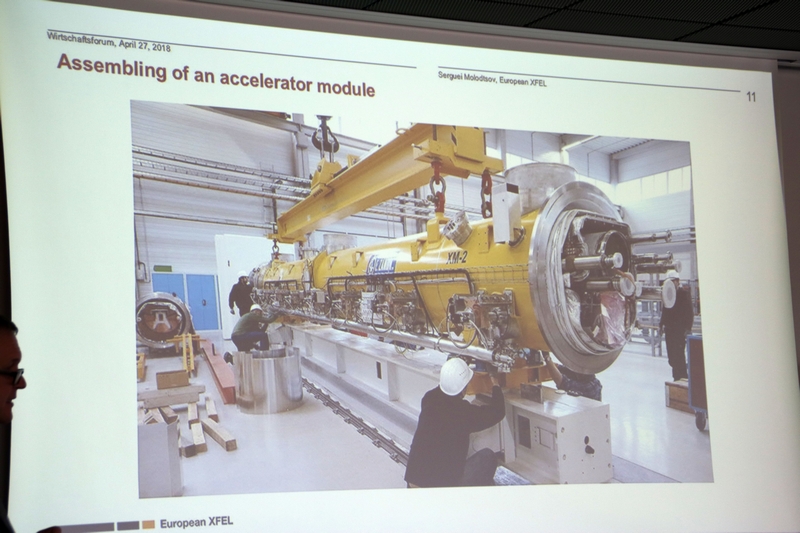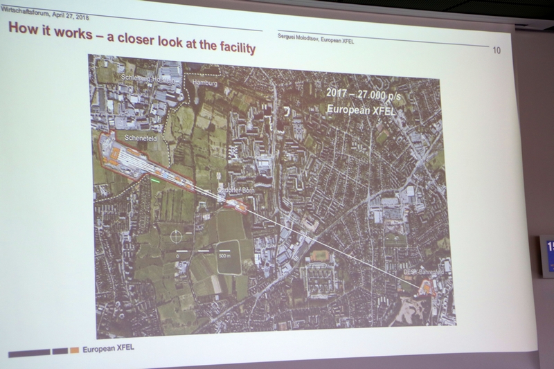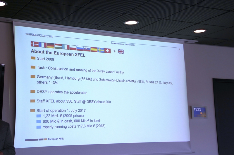 Gelebte Deutsch-Russische Forschungskooperation auf allerhöchstem Niveau!! Im Anschluß an das Wirtschaftsforum organisierte die Gilde für die Moskauer Delegation einen Besuch der im letzten September eingeweihten, 3,4 km langen Röntgenlaser-Forschungsanlage European XFEL bei DESY. Dort sind mittels Röntgenblitzen 3D-Detailaufnahmen von Molekülen, Zellen, Viren und chemischen Reaktionen möglich. Russland hat sich mit 27% an den Baukosten von rd. 1,22 Mrd. Euro beteiligt.