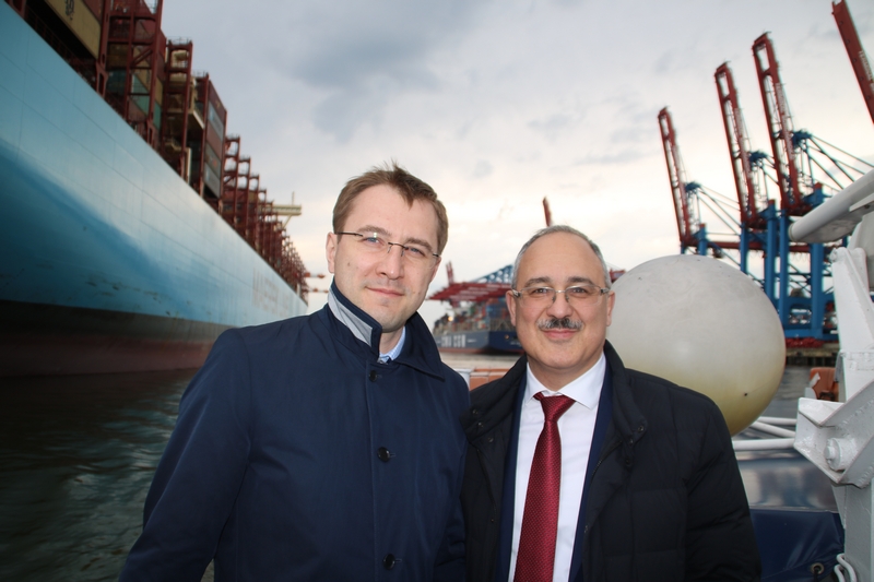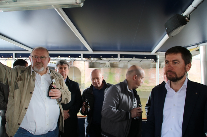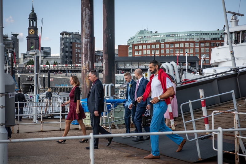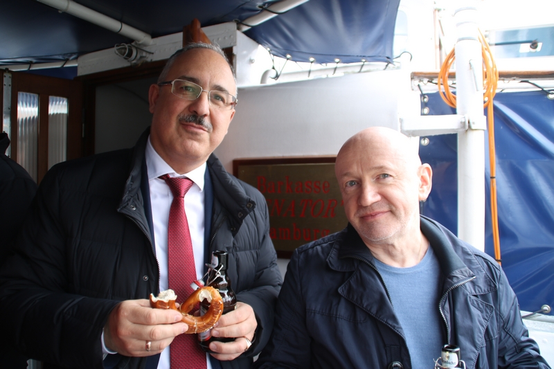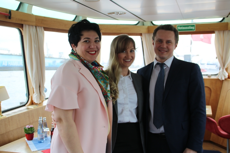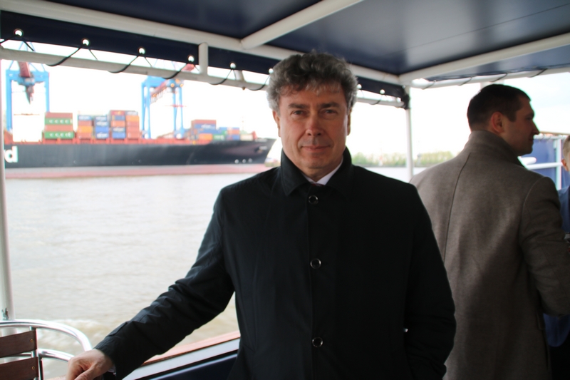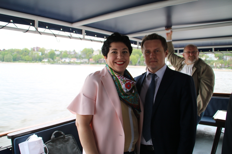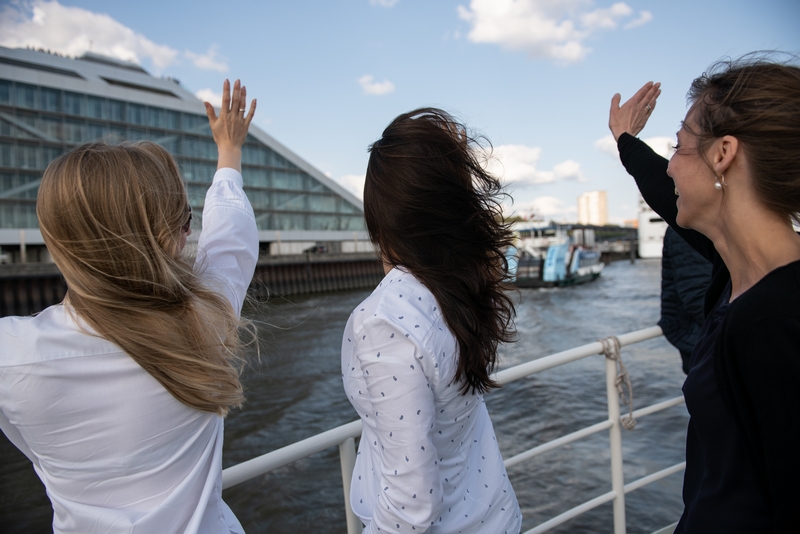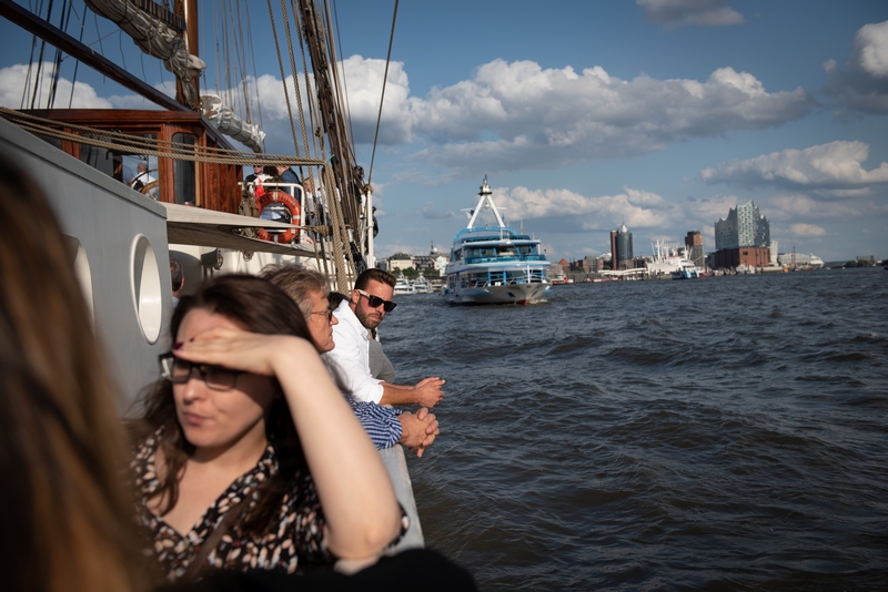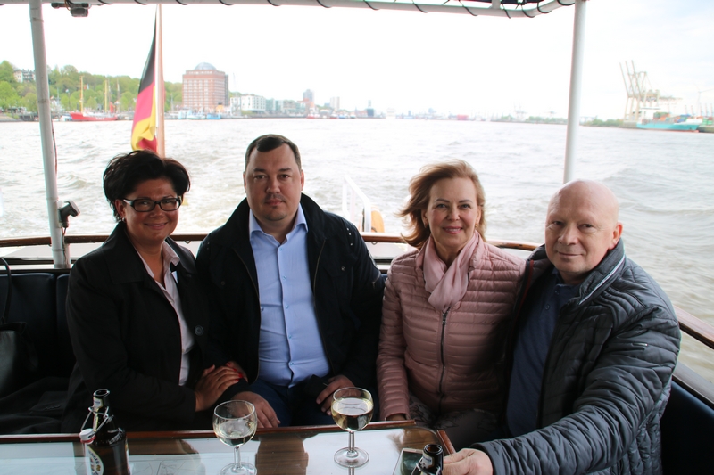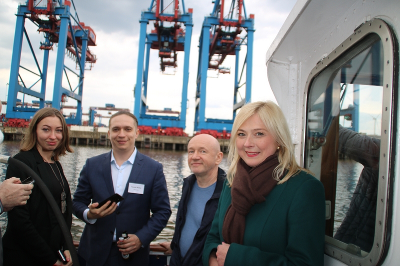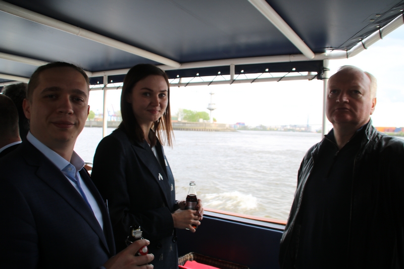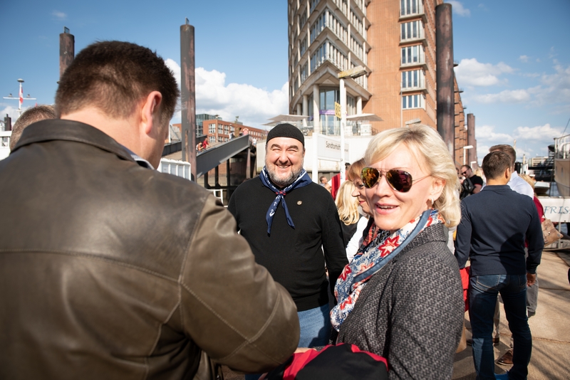 Über unser Mitglied Hafen Hamburg Marketing e.V. erhielten wir die tolle Möglichkeit, den Moskauer Gästen zum Abschluss des Tages an Bord der Senator-Barkasse den Hafen zu präsentieren.