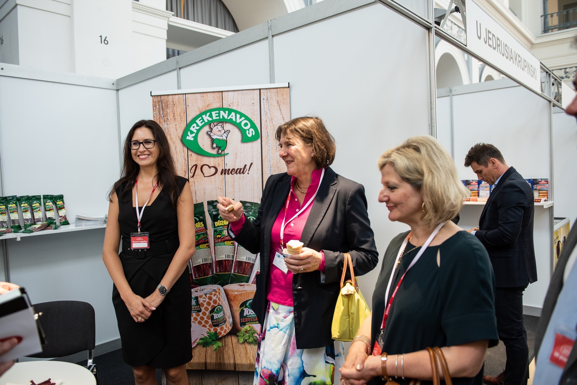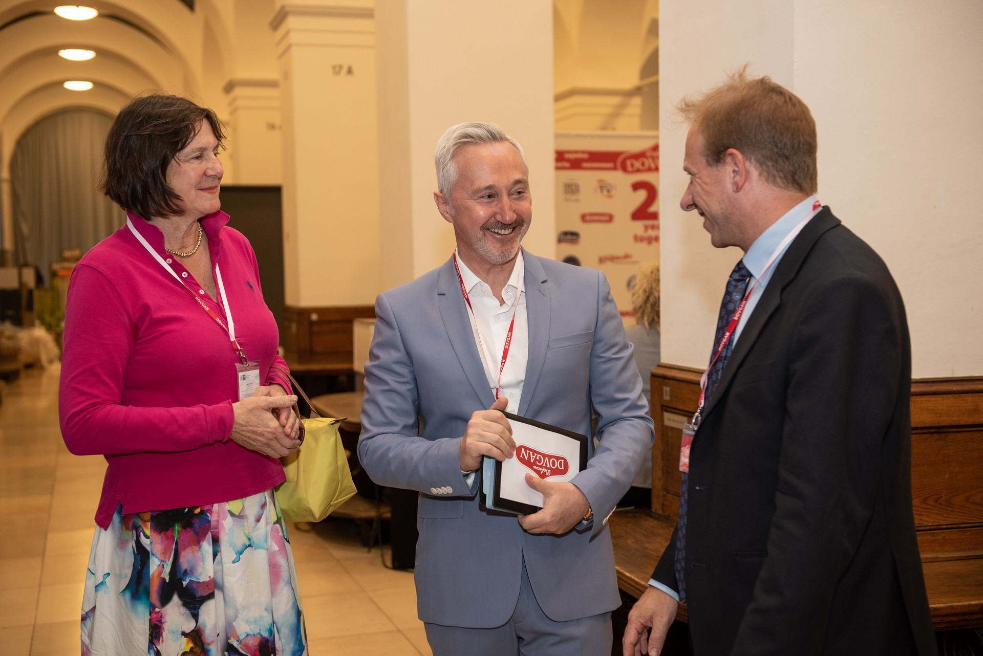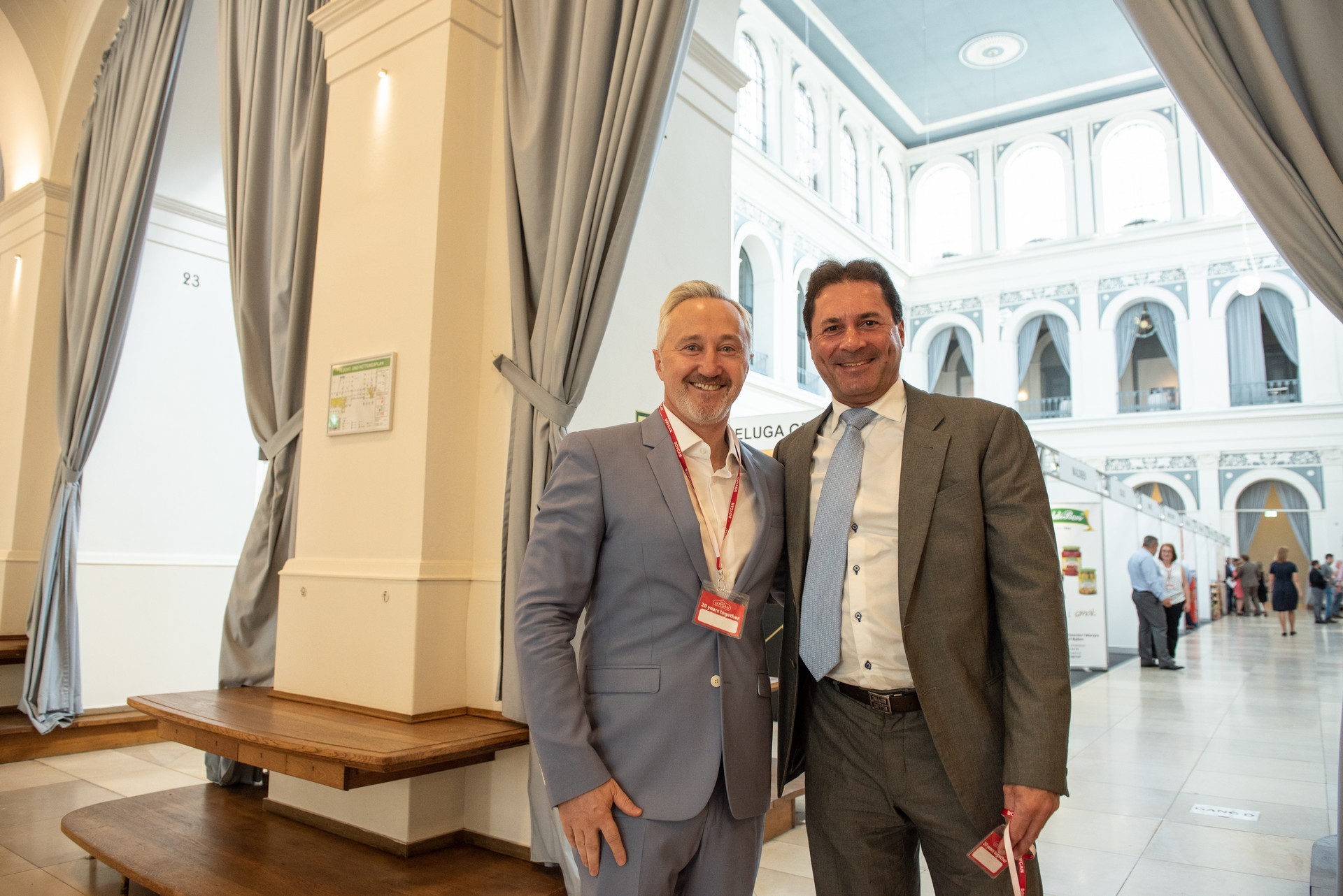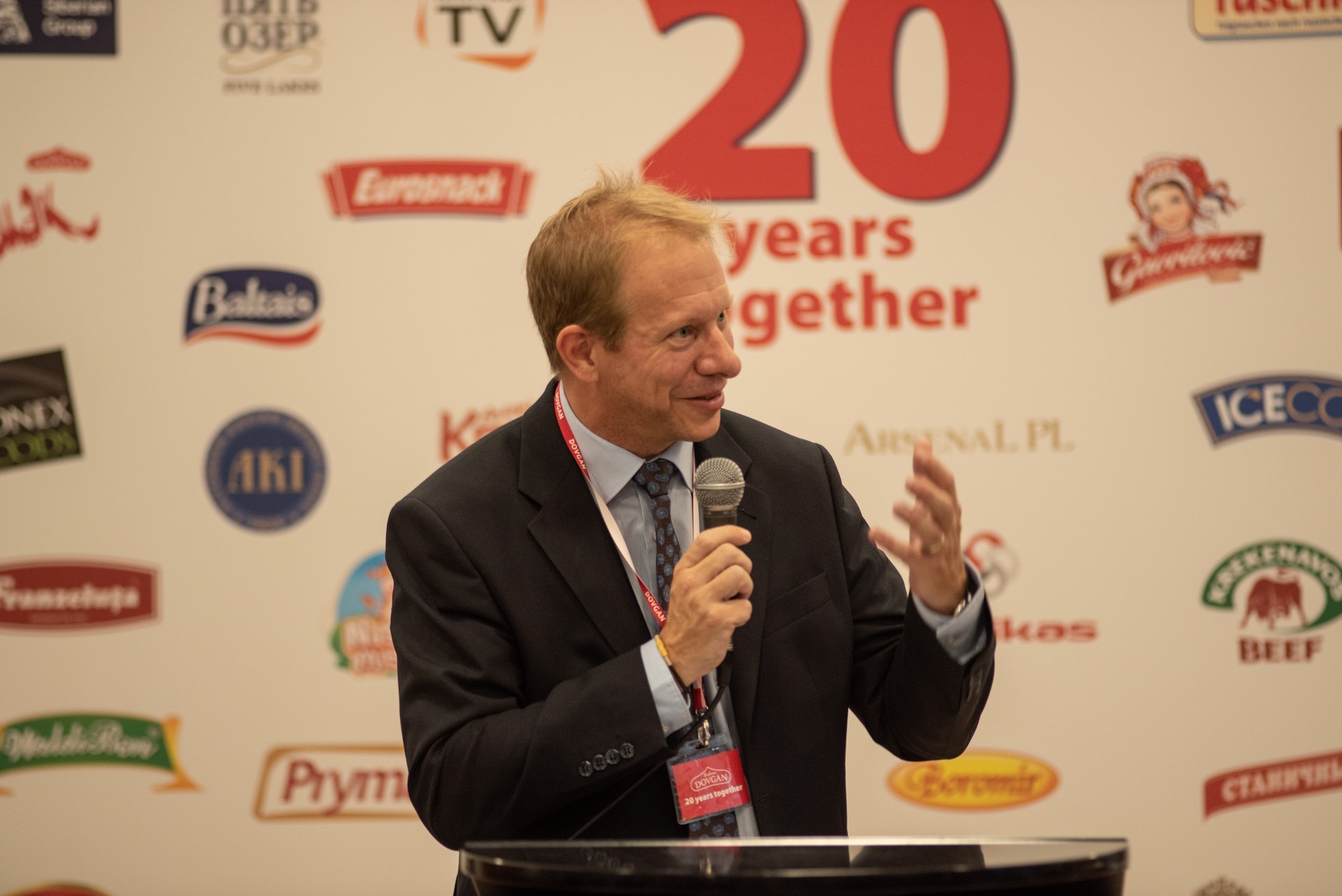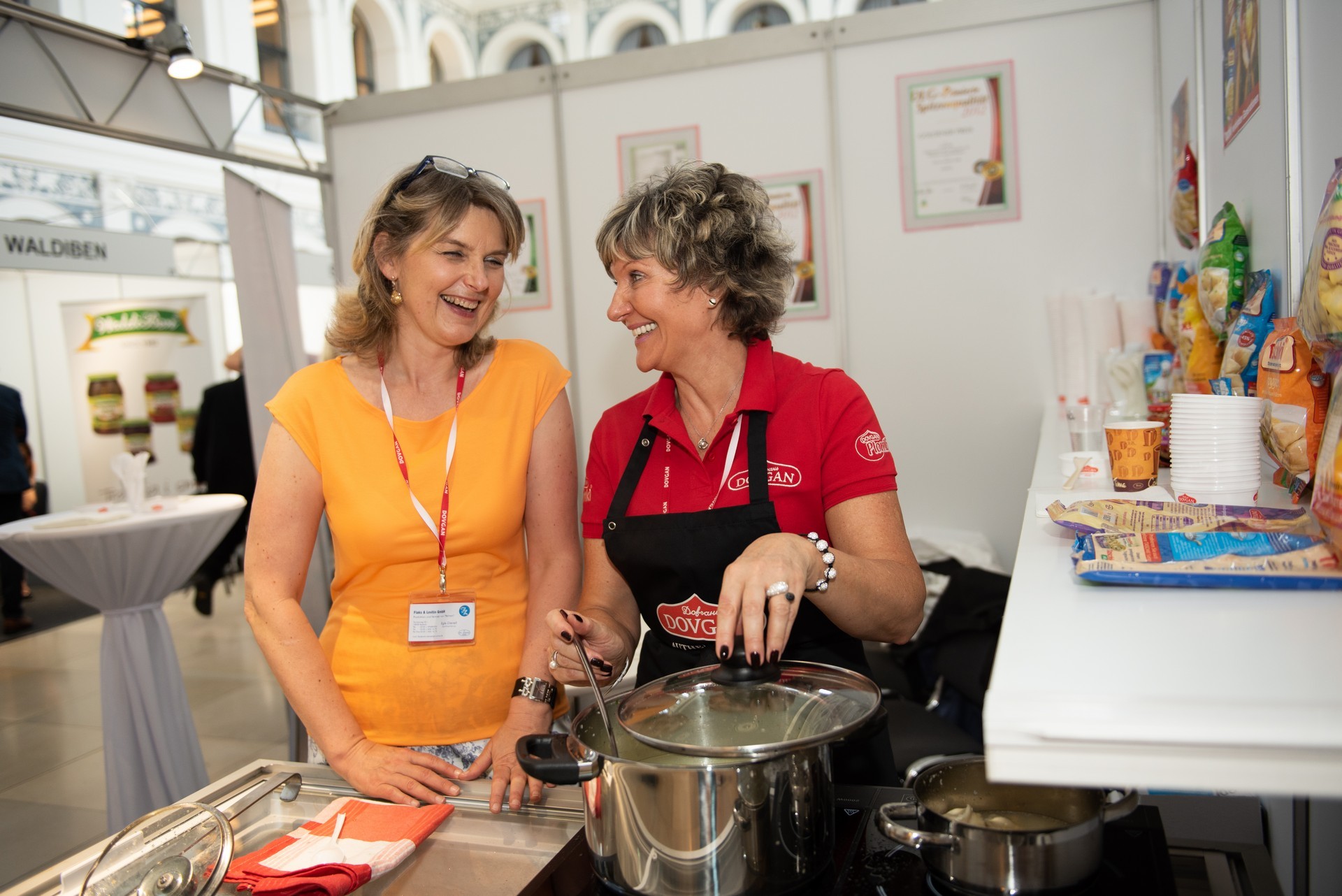 Unser Gründungsmitglied und langjähriger stellvertretender Vorsitzender André Kowalew feierte mit seiner DOVGAN GmbH das 20-jährige Firmenjubiläum! André hat DOVGAN mit enormem Einsatz und viel Leidenschaft von Null aufgebaut, ist dabei im hart umkämpften deutschen Lebensmittelmarkt oft gegen den Strom geschwommen und hat es geschafft, bei fast allen großen Einzelhandelsketten mit einem breiten Sortiment gelistet zu sein. Sein Brand ist im gesamten Bundesgebiet nicht nur bei den russischstämmigen Bürgern bekannt. Ganz im Gegenteil steht DOVGAN bei vielen Deutschen hoch im Kurs, sind doch das russische Plombir-Eis, Pelmeni, Borschtsch, Salzgurken, eingelegte Tomaten und viele andere Produkte nach Rückkehr von der Geschäftsreise aus Russland beliebte Gerichte, die man auch hier ab und an genießen möchte. Schon längst konzentriert sich DOVGAN nicht mehr nur auf russische Produkte, sondern beliefert die deutschen Ketten mit authentischen Produkten unter TOP-Marken aus Polen, Rumänien, der Adria-Region (Ex Jugoslawien) und dem Orient (Türkei, Libanon, Marokko, Syrien usw.). Diese Markenvielfalt hat DOVGAN im Börsensaal der Handelskammer gemeinsam mit seinen Produzenten aus Russland, Polen, Kroatien, Litauen und Lettland präsentiert. Mit Verkostungen leckerer Produktneuheiten und interessanter Vorträge wurde man in die DOVGAN-Welt entführt. Die Eröffnung der Veranstaltung übernahm der Präses der Handelskammer Hamburg, Tobias Bergmann, der sich anschließend auch einen ausführlichen Rundgang nicht nehmen ließ.