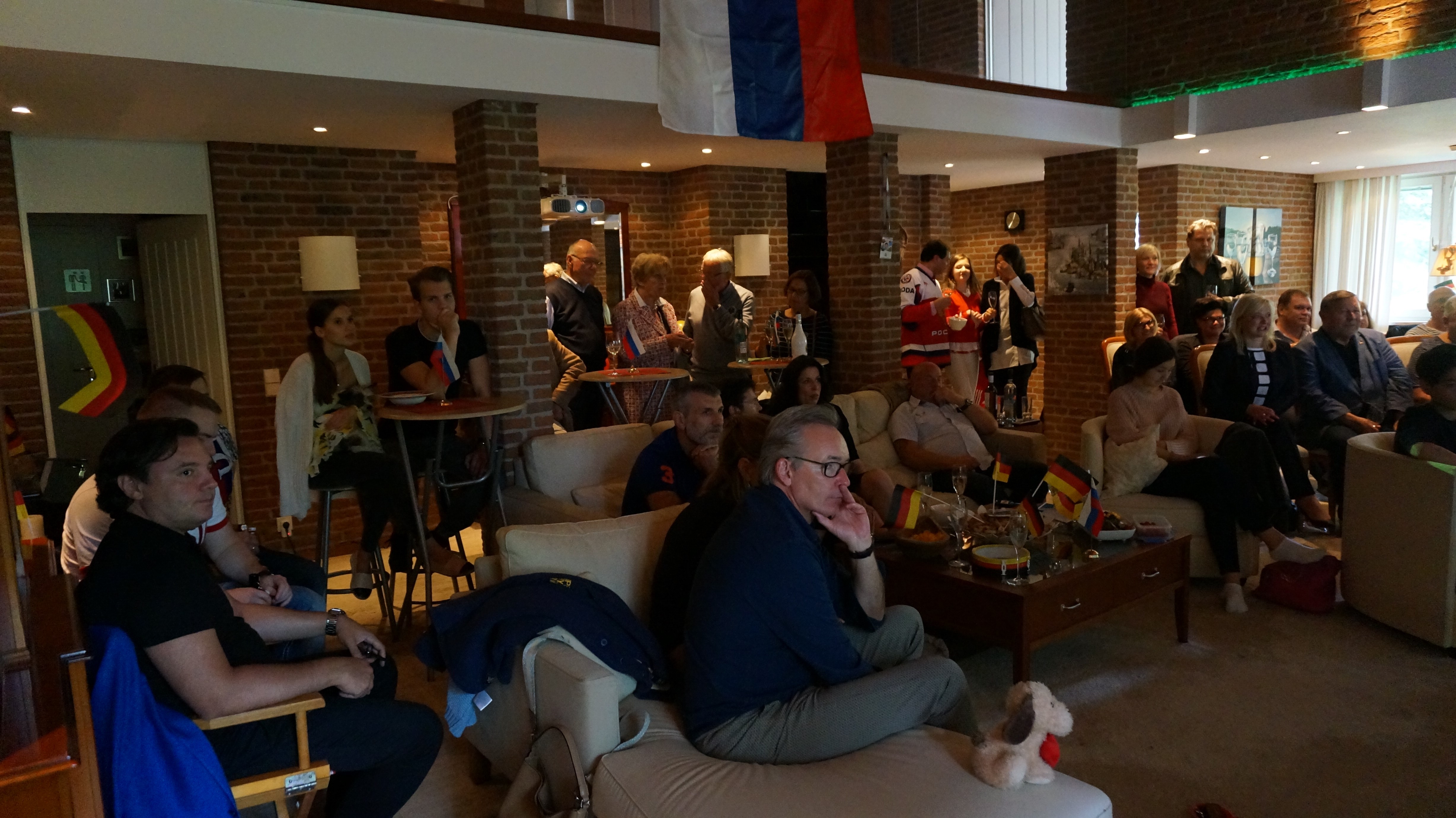 Über 50 Mitglieder und Freunde schauten gemeinsam das letzte Gruppenspiel der russischen Sbornaja gegen Uruguay auf der großen Leinwand im Hause unseres stv. Vorsitzenden Mirco Nowak an. Trotz Niederlage qualifizierte sich das Team für das Achtelfinale. So war die Stimmung an diesem schönen Sommertag ausgelassen und entspannt. Wieder ein sehr schönes Event für viel Freude und Spaß, neue Bekanntschaften und effektives Networking im Gildekreis.