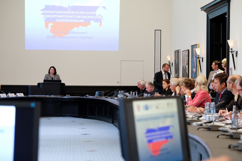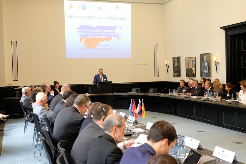 Anl. der weltweit führenden Messe der maritimen Industrie „SMM 2018“ besuchte der Vize-Gouverneur von St. Petersburg, Sergej N. Movtchan, mit einer Delegation von Unternehmens- und Clustervertretern Hamburg und zeigte damit einmal mehr sein hohes Interesse am Ausbau der wirtschaftlichen Verbindungen mit Hamburg und Deutschland. Die Gilde organisierte wie schon im vergangenen Jahr gemeinsam mit der Regierung der Stadt St. Petersburg, der Handelskammer Hamburg und dem Ostausschuss – Osteuropaverein der Deutschen Wirtschaft e.V. ein „Wirtschaftsforum St. Petersburg“ im Plenarsaal der Handelskammer Hamburg. Diesmal standen Kooperationschancen in den Clustern Gesundheitswirtschaft und Nachhaltige Stadtentwicklung im Fokus. Über 80 Teilnehmer hörten spannende Vorträge, beteiligten sich aktiv an den Panels und nutzten die Möglichkeit für Einzelgespräche während und nach der Veranstaltung. Ein voller Erfolg!