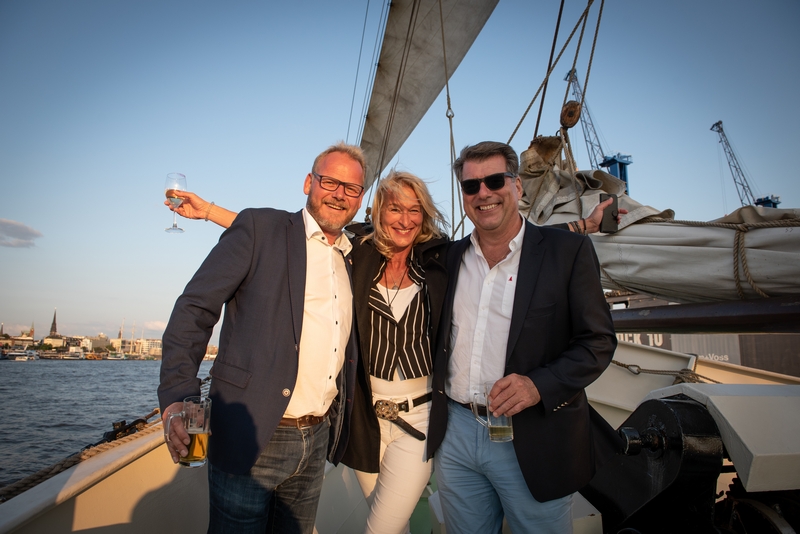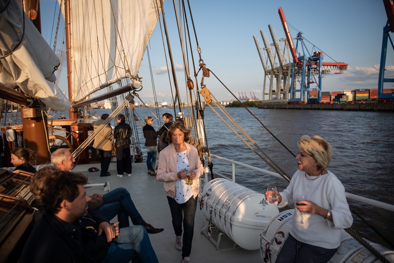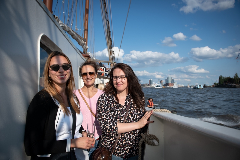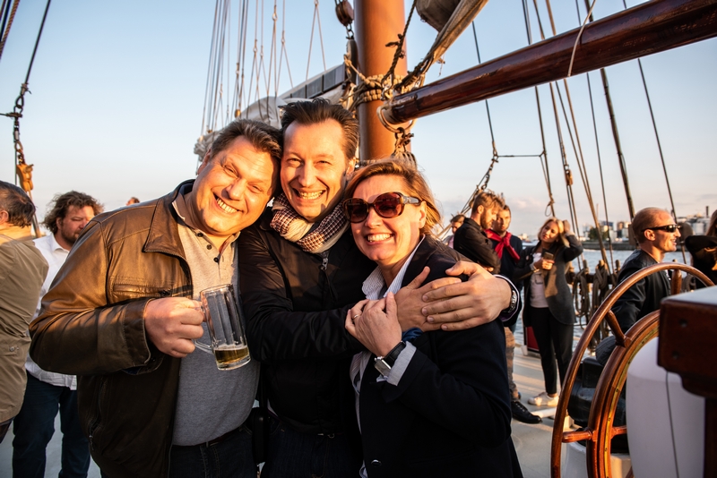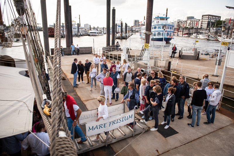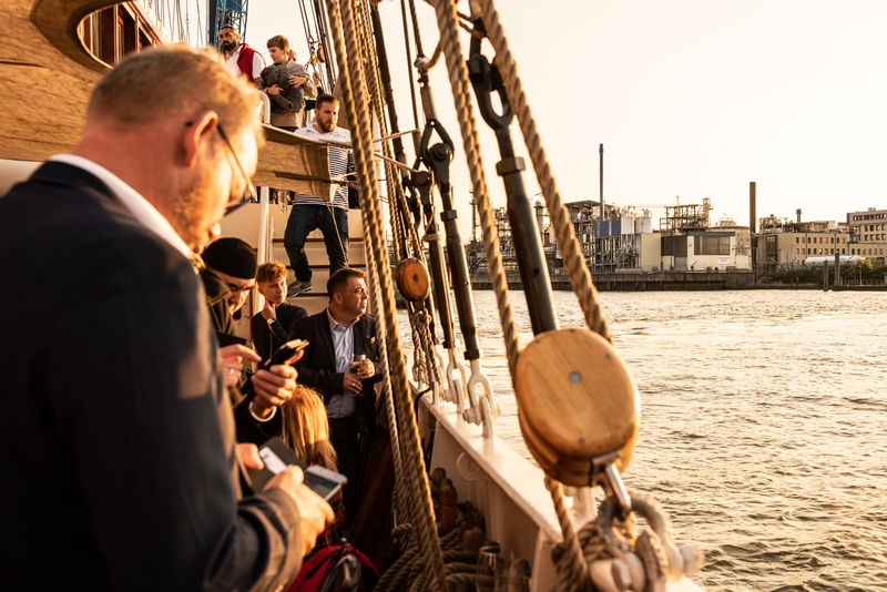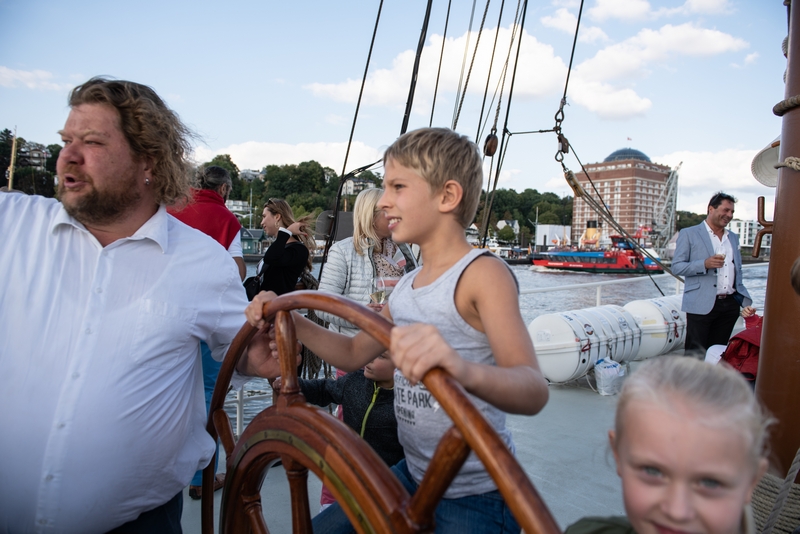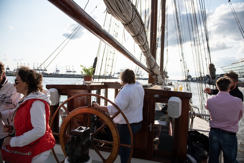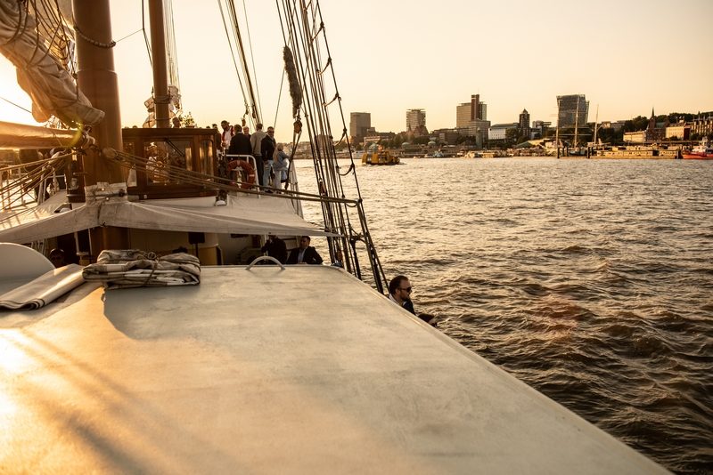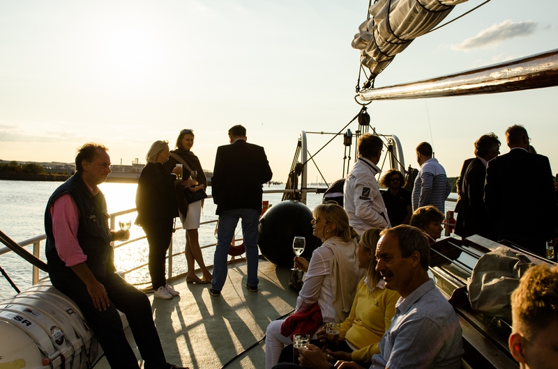 Die Gilde voll auf Kurs! Bei fantastischem Wetter mit Sonnenschein und lauer Brise segelten 95 Mitglieder und Freunde auf dem Dreimastschoner Mare Frisium die Elbe entlang. Eine ausgelassene Stimmung an Bord schaffte DJ Slong mit Katya. Für Essen und Trinken sorgte das Team von NordEvent. Der Käpt´n brachte uns gefühlt viel zu schnell wieder an den Anleger bei der Elbphilharmonie, wo der Abend bei vielen wertvollen Kontakten und angeregten Gesprächen ausklang. Vielen Dank an alle Teilnehmer, die das 11. Sommerfest mit einem Schiff in Vollbesetzung zum Erfolg gemacht haben, was die tollen Bildern unseres Stammfotografen Jura Buterus widerspiegeln.