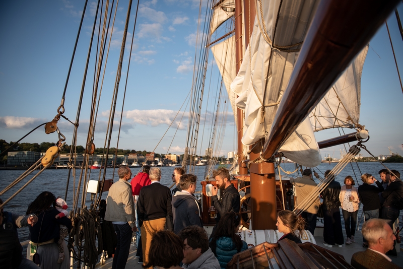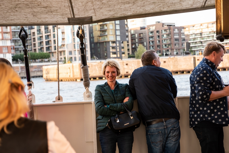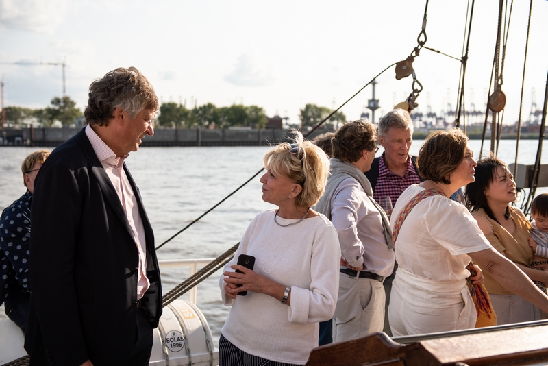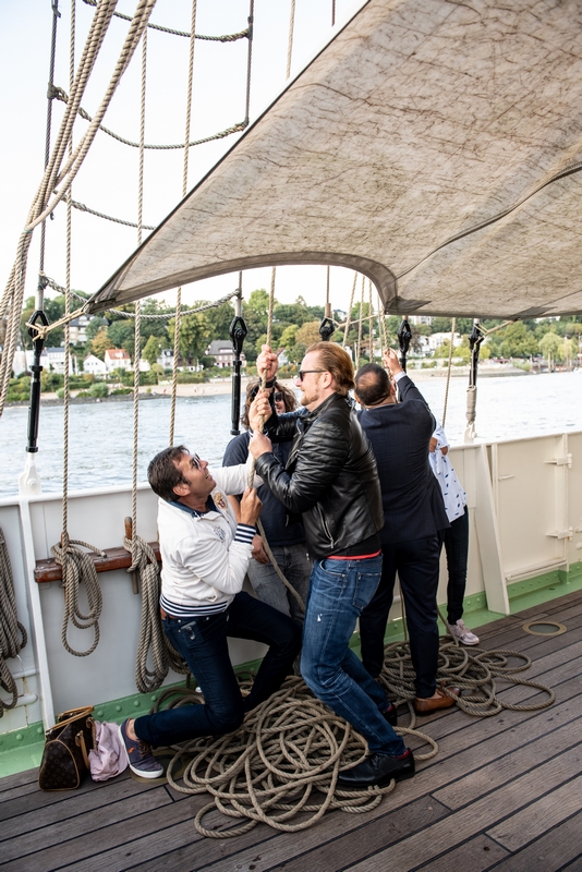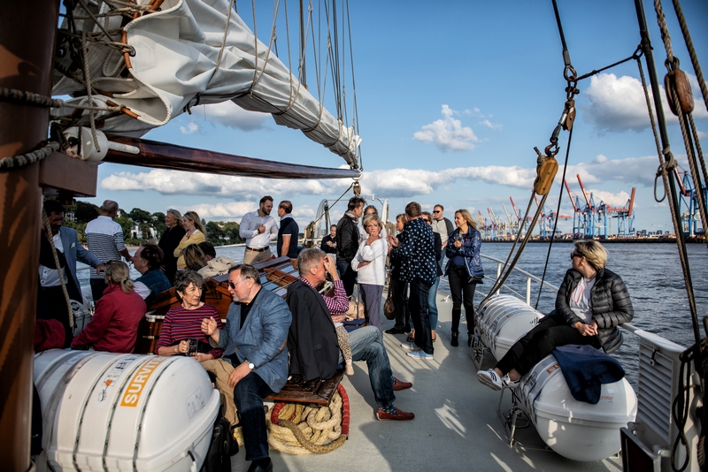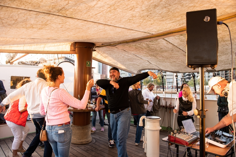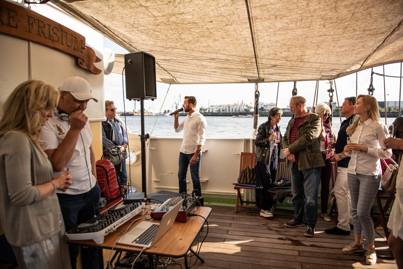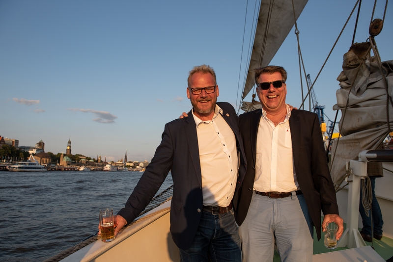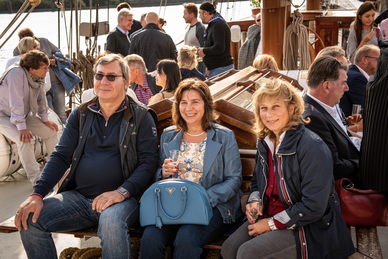Die Gilde voll auf Kurs! Bei fantastischem Wetter mit Sonnenschein und lauer Brise segelten 95 Mitglieder und Freunde auf dem Dreimastschoner Mare Frisium die Elbe entlang. Eine ausgelassene Stimmung an Bord schaffte DJ Slong mit Katya. Für Essen und Trinken sorgte das Team von NordEvent. Der Käpt´n brachte uns gefühlt viel zu schnell wieder an den Anleger bei der Elbphilharmonie, wo der Abend bei vielen wertvollen Kontakten und angeregten Gesprächen ausklang. Vielen Dank an alle Teilnehmer, die das 11. Sommerfest mit einem Schiff in Vollbesetzung zum Erfolg gemacht haben, was die tollen Bildern unseres Stammfotografen Jura Buterus widerspiegeln.