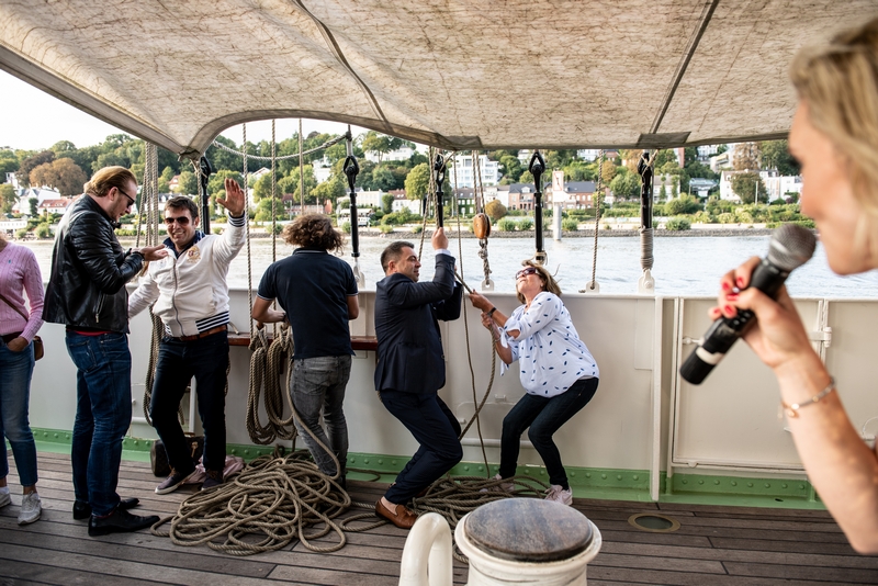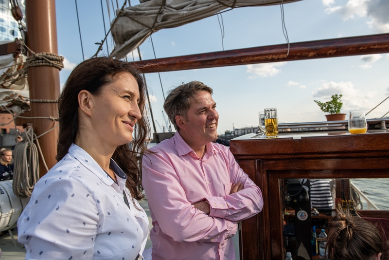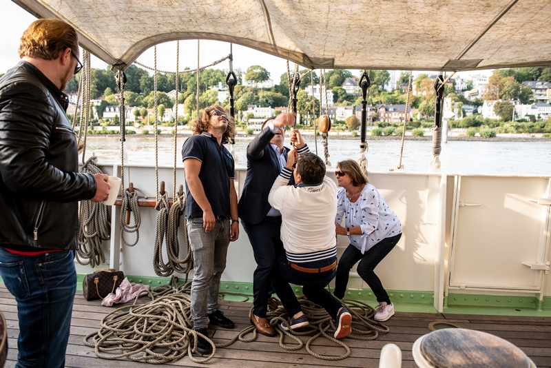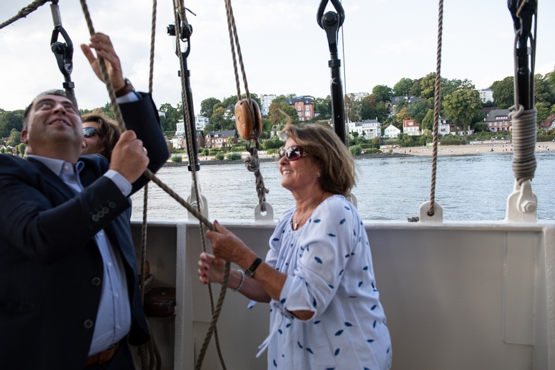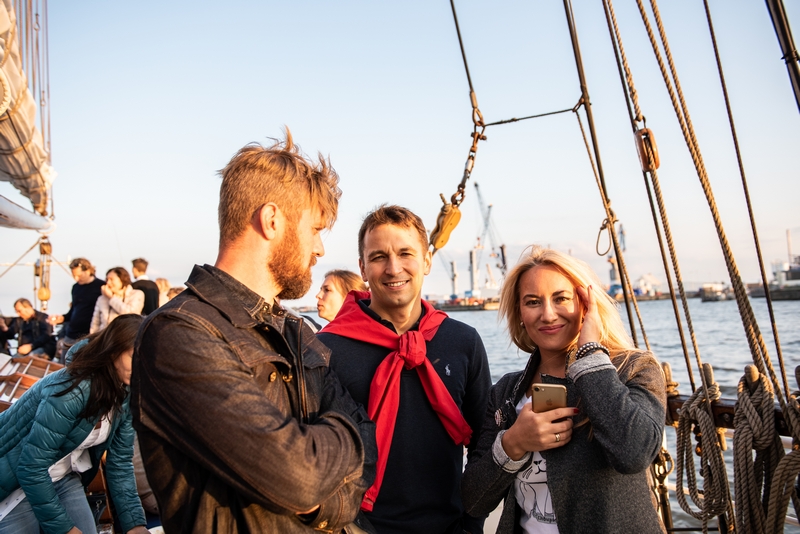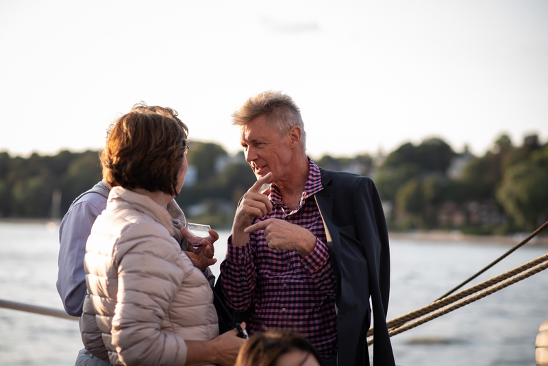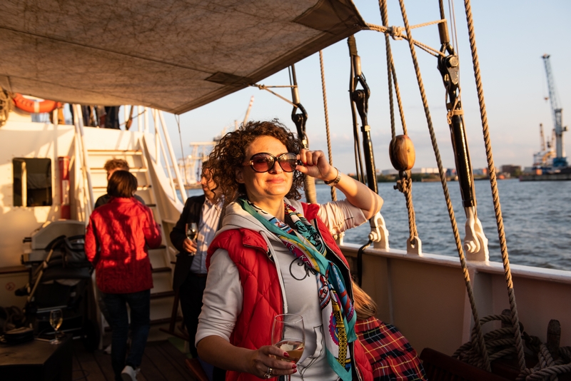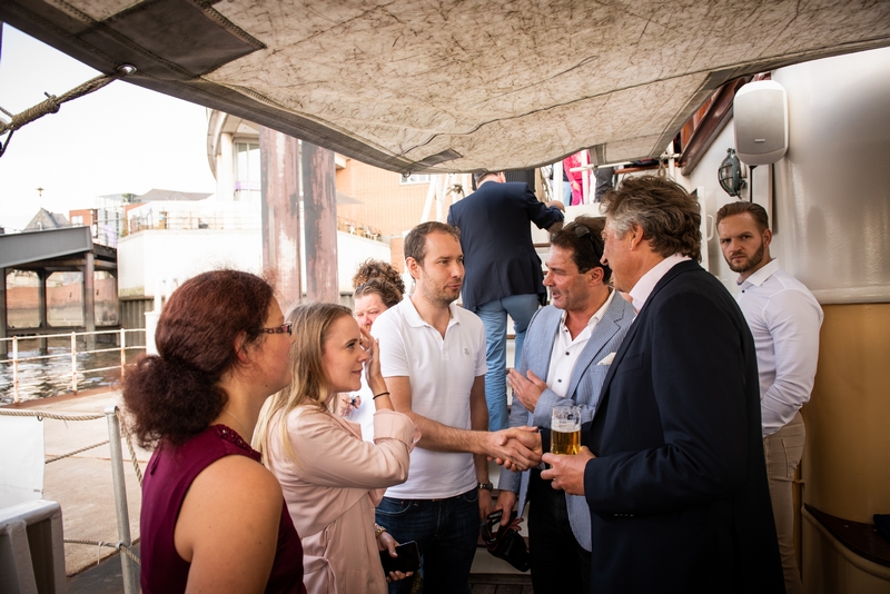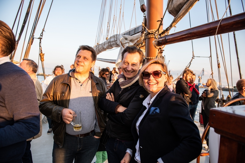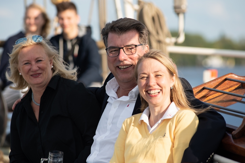 Die Gilde voll auf Kurs! Bei fantastischem Wetter mit Sonnenschein und lauer Brise segelten 95 Mitglieder und Freunde auf dem Dreimastschoner Mare Frisium die Elbe entlang. Eine ausgelassene Stimmung an Bord schaffte DJ Slong mit Katya. Für Essen und Trinken sorgte das Team von NordEvent. Der Käpt´n brachte uns gefühlt viel zu schnell wieder an den Anleger bei der Elbphilharmonie, wo der Abend bei vielen wertvollen Kontakten und angeregten Gesprächen ausklang. Vielen Dank an alle Teilnehmer, die das 11. Sommerfest mit einem Schiff in Vollbesetzung zum Erfolg gemacht haben, was die tollen Bildern unseres Stammfotografen Jura Buterus widerspiegeln.