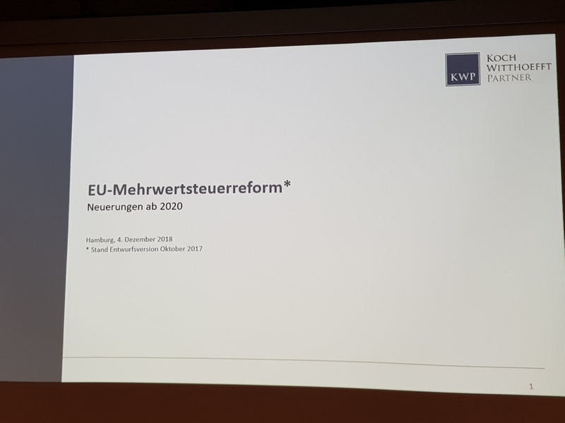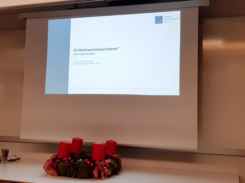 Unser langjähriges Mitglied Anna Maslennikow ist Partner bei der Koch Witthoefft Partner Steuerberatungsgesellschaft und öffnete die Türen der Kanzlei für einen sehr interessanten Vortrag über die Sofortmaßnahmen der neuen EU-Mehrwertsteuerreform, die bereits kurzfristig in 2019/2020 für Unternehmen im Binnenhandel aktuell sind.