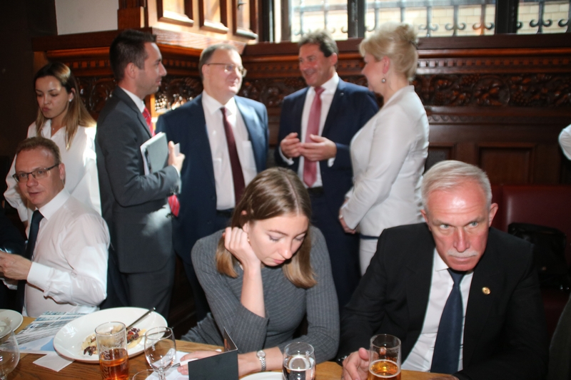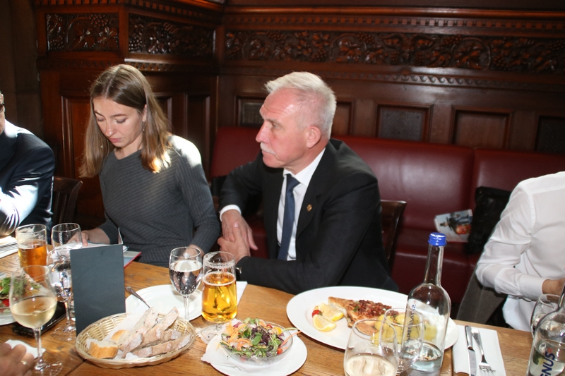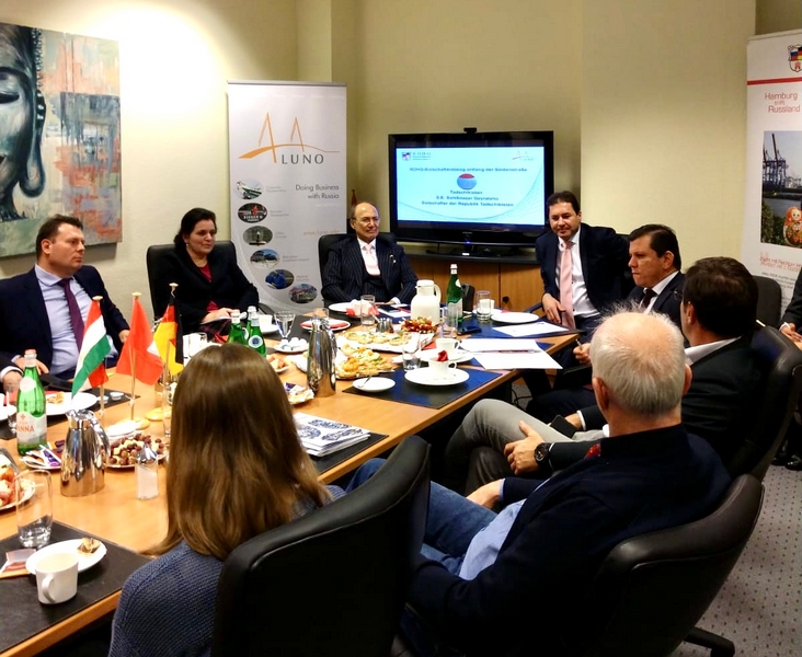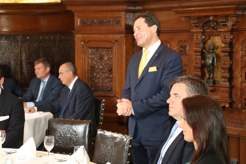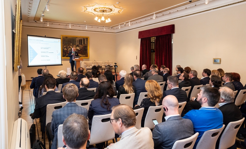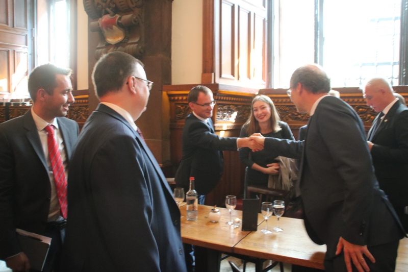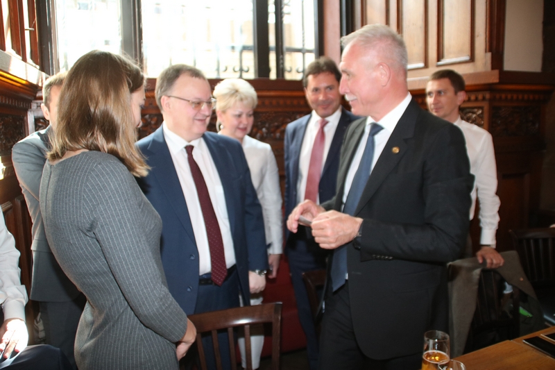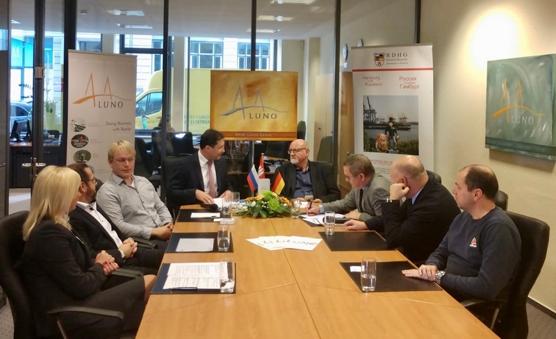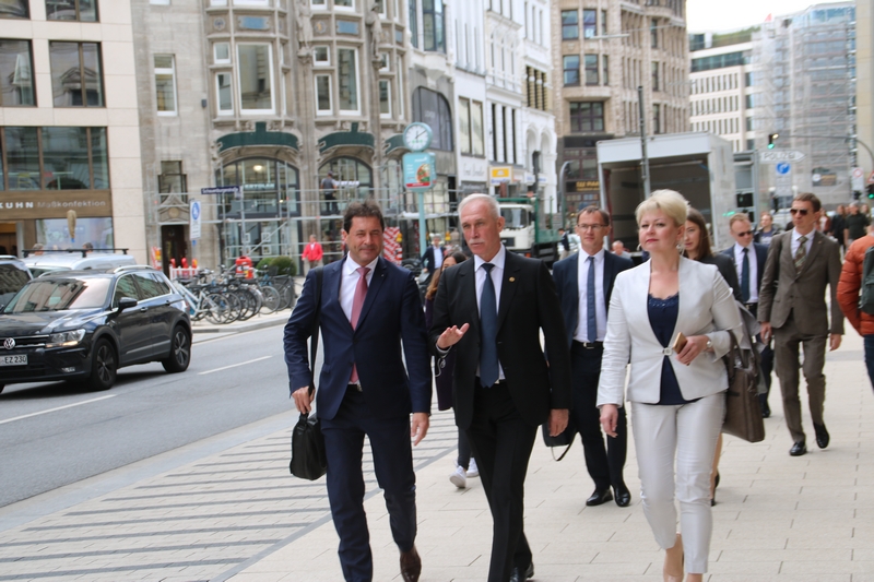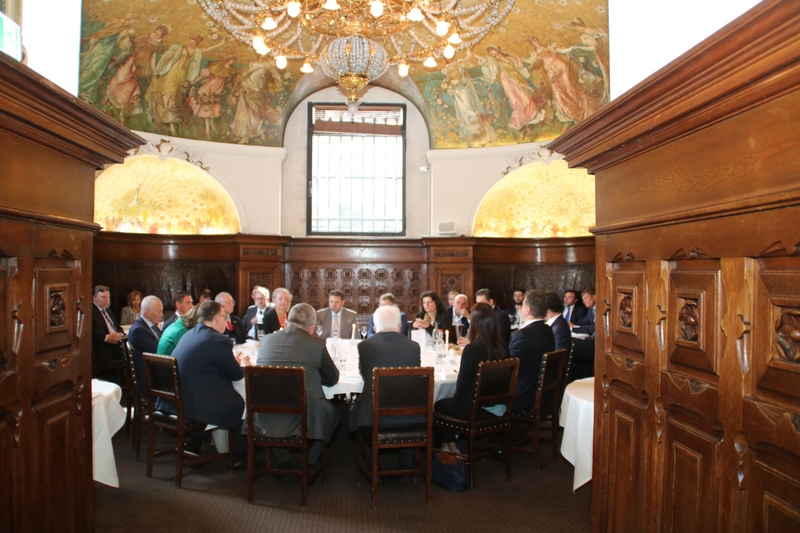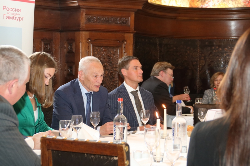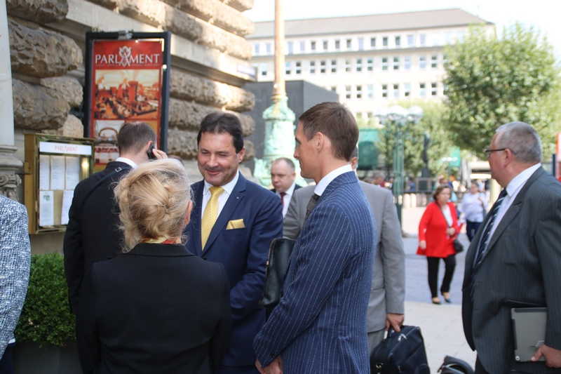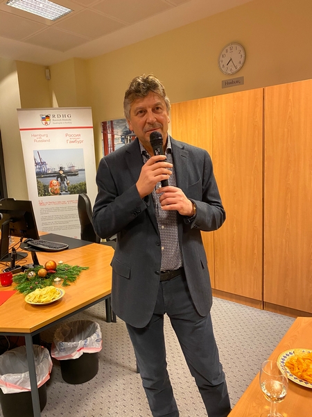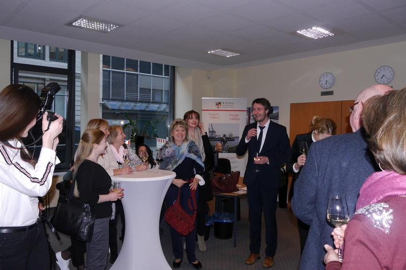 Der Staatssekretär der Staatenunion Russland-Belarus, Grigori A. Rapota, besuchte auf Einladung der Handelsgilde für einen Tag die Freie und Hansestadt Hamburg und präsentierte das spannende Projekt eines Hochgeschwindigkeits-Bahntransportkorridors zwischen Hamburg und St. Petersburg, quasi als Verlängerung der sich in der Planungsphase befindlichen Hochgeschwindigkeitstrasse zwischen Moskau und St. Petersburg. Über die Verlängerung nach Hamburg sprach er beim RDHG-Round-Table-Lunch „Logistics“ im Rathauskeller „Parlament“ mit rund 30 interessierten Unternehmensvertretern aus dem Logistikbereich und dem Finanzsektor.
