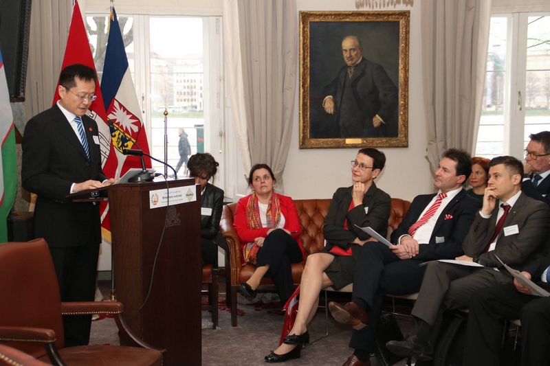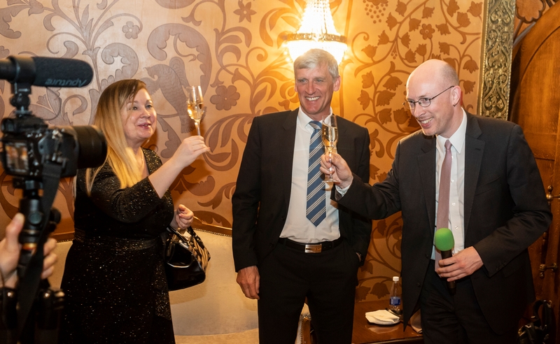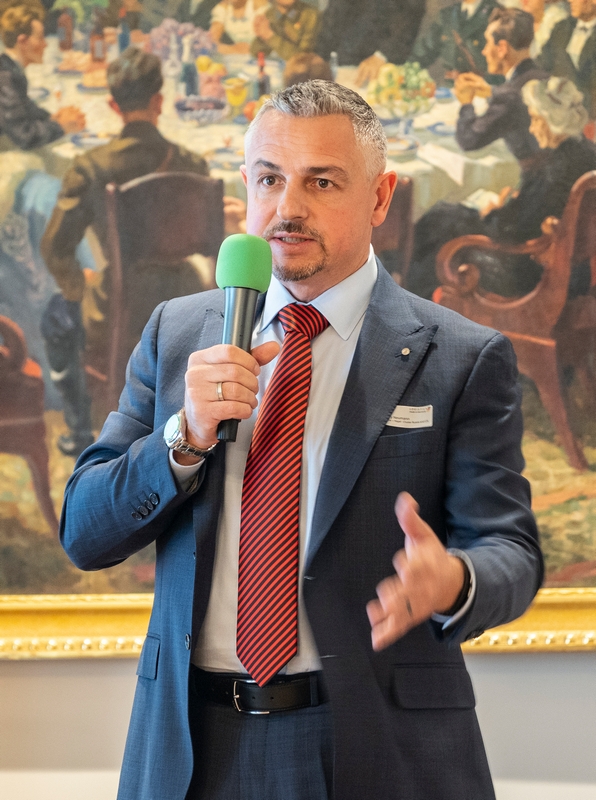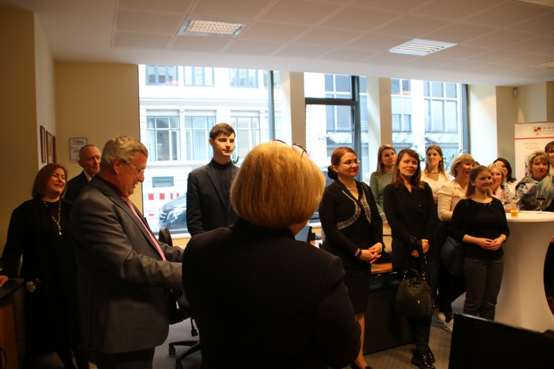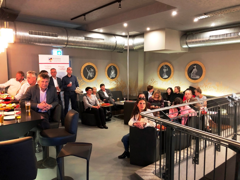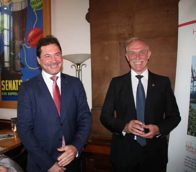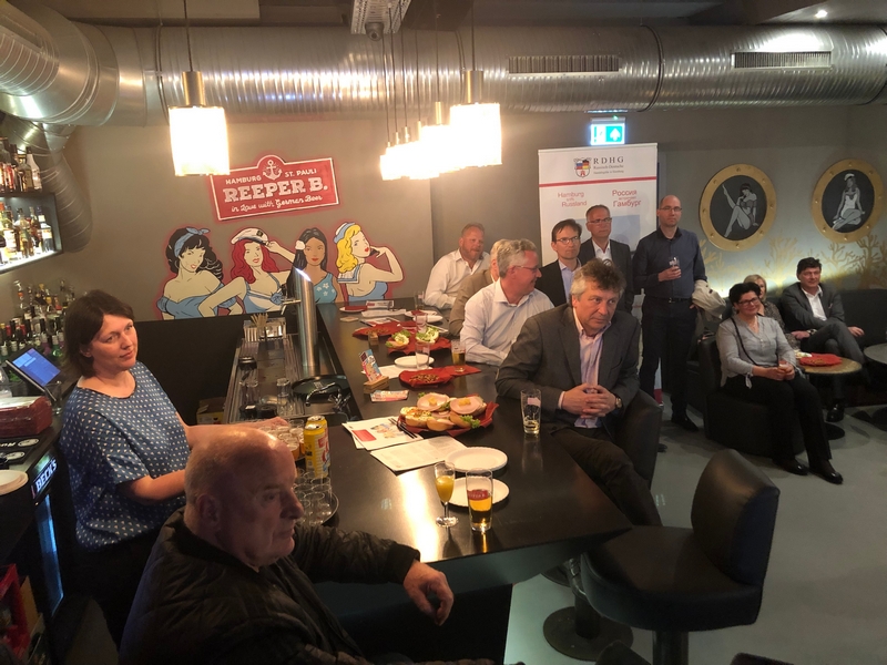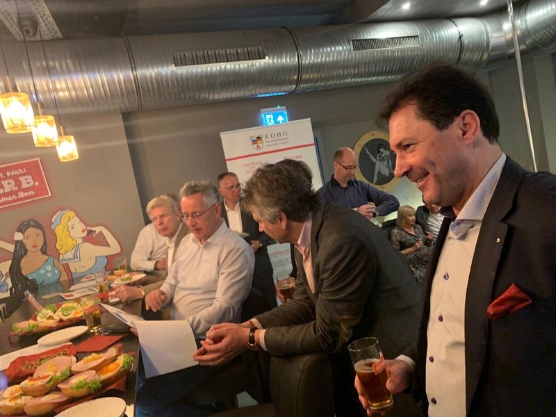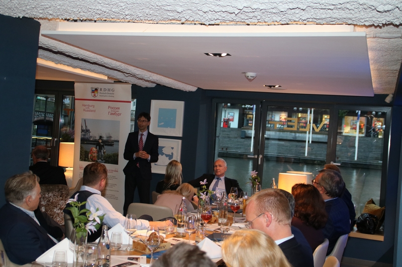 Ehrengast und Impulsgeber des RDHG-Stammtisch BELARUS war S.E. Denis Sidorenko, außerordentlicher und bevollmächtigter Botschafter der Republik Belarus in der Bundesrepublik Deutschland. Der Botschafter gab 35 Mitgliedern und Gästen einen Überblick über die aktuelle wirtschaftliche Entwicklung des Landes und ging dabei auch auf die besonderen Beziehungen mit Russland ein. Belarus möchte dank seiner zentralen Lage auf der Neuen Seidenstraße zu einer Handelsdrehscheibe zwischen Ost und West werden. Für Hamburg und seinen Hafen nimmt Belarus eine Schlüsselposition in der Bahnverbindung von China nach Europa ein. China wiederum nutzt das Land als Transitkorridor und Brückenkopf zur Erschließung von Absatzmärkten in Europa.