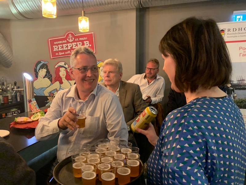 Am 24. April öffnete unser Mitglied Jan-Peter Stölken, CEO von OETTINGER International, seine Türen und lud auf die Reeperbahn zur Reepbana ein, wo moderne Bierkultur gelebt und innovative neue Bier- und Softdrinkmarken „Made in Germany“ für den weltweiten Export eingeführt werden. Herr Stölken demonstrierte dabei sehr eindrucksvoll, wie junges, modernes Marketing funktioniert. So wird deutsches Bier mit frischen Ansätzen erfolgreich in die Welt hinausgebracht! Vielen Dank ans Team für die nette Verkostung, Chapeau und weiter so, es hat geschmeckt!!