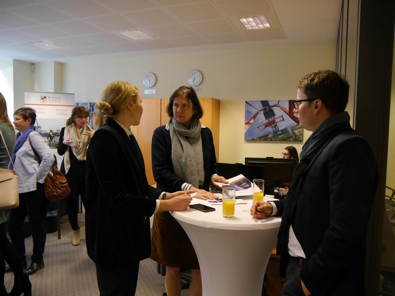 Als Impulsgeber haben unser Mitglied Thomas Baum, Executive bei Euler Hermes, und Caroline Kutscha aus dem Mittelstandsbereich Trade Finance von der Commerzbank AG die Möglichkeiten von Handels- und Projektfinanzierungen bei Russland- und GUS-Geschäften mit Absicherung durch Hermes-Bürgschaften aufgezeigt.