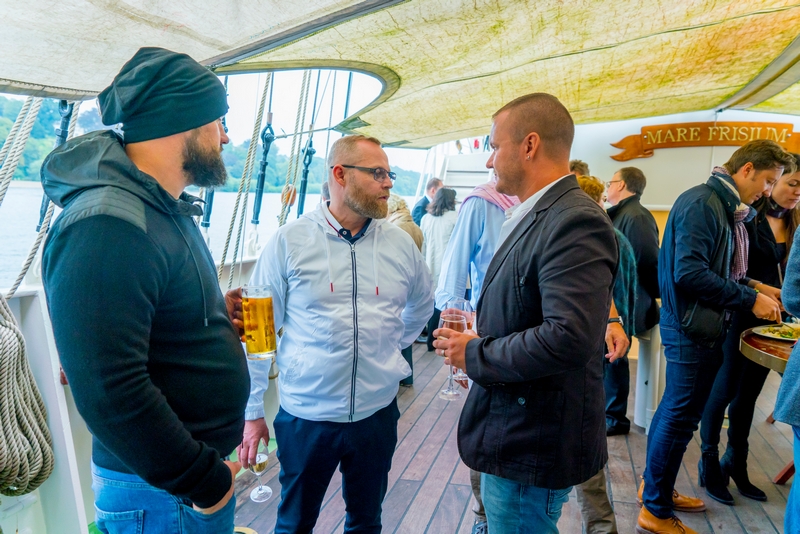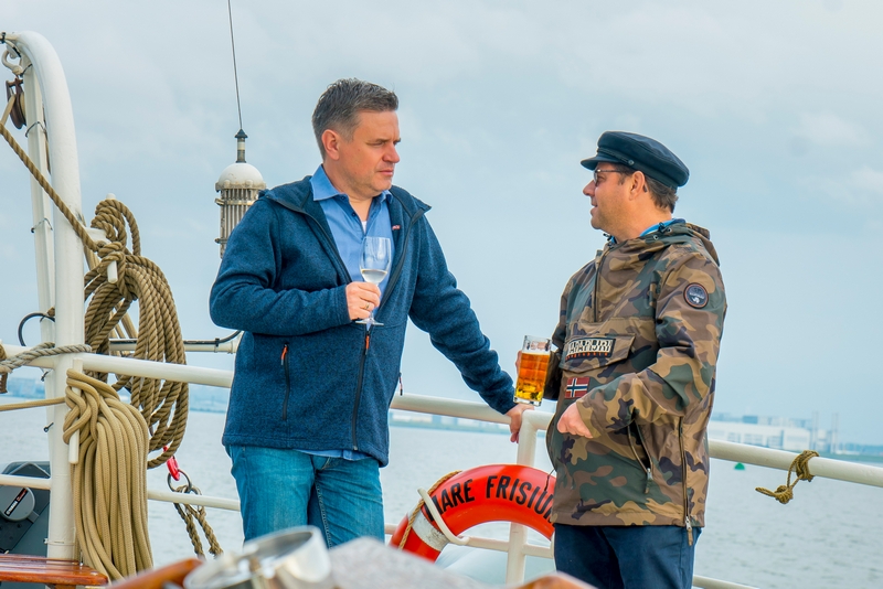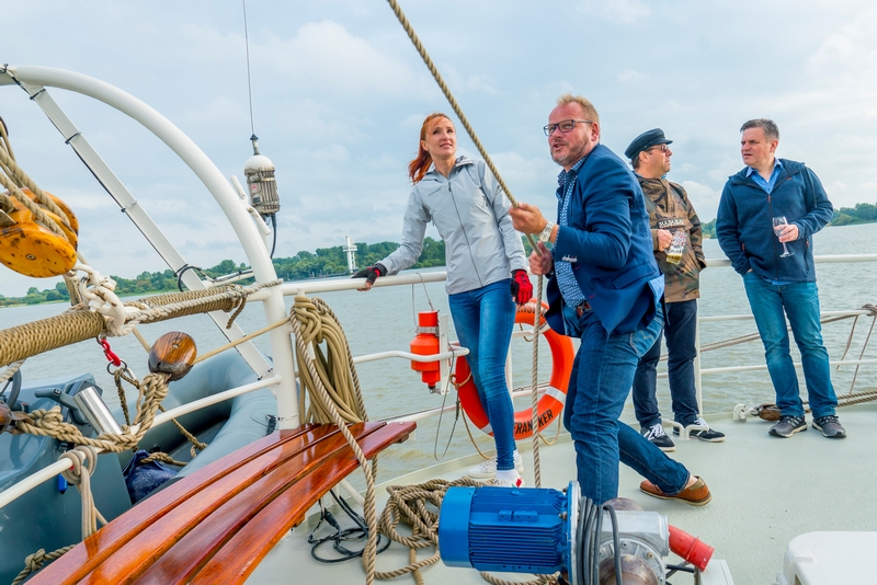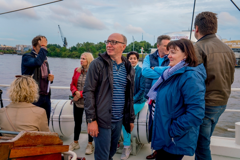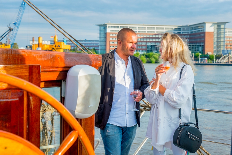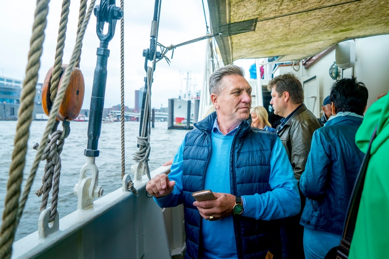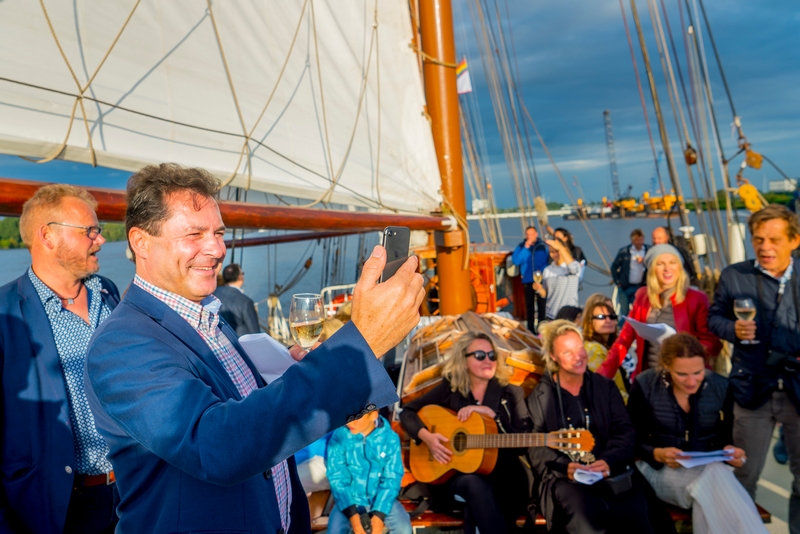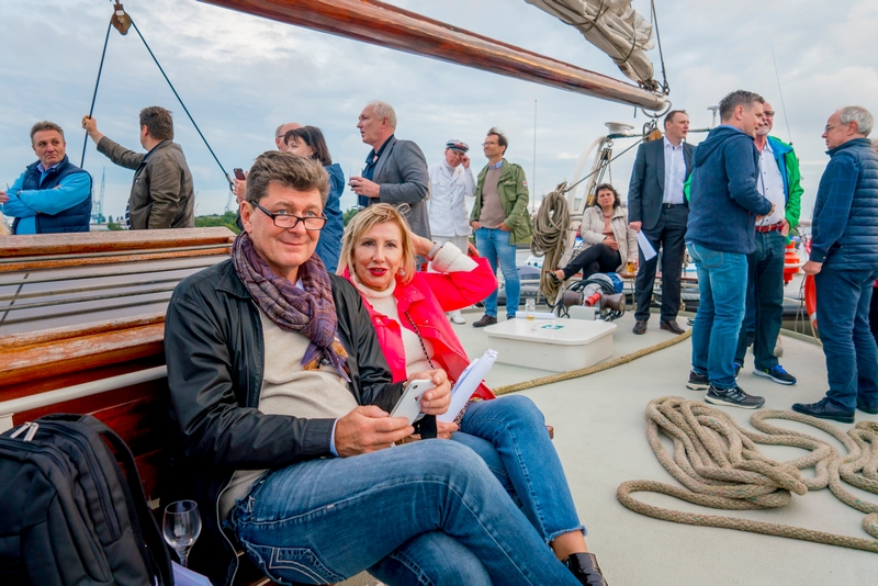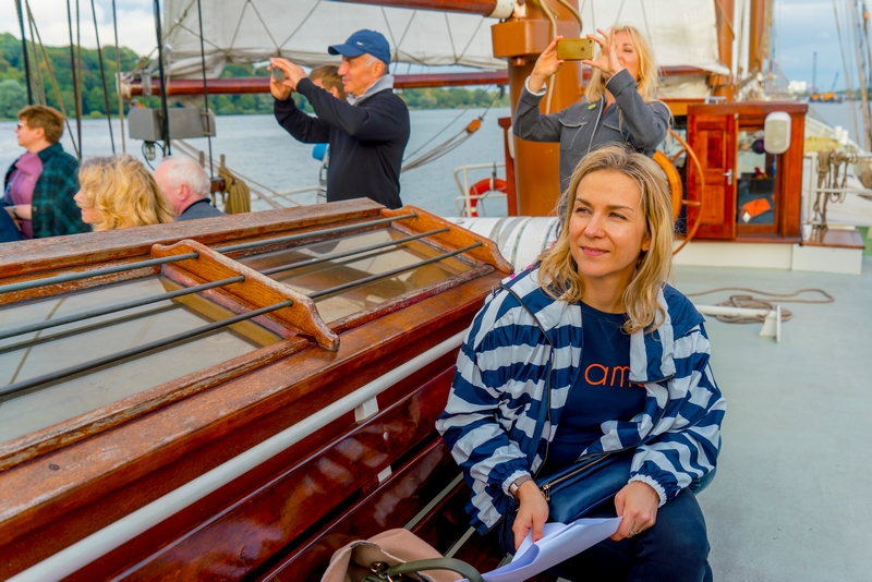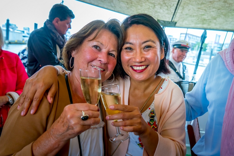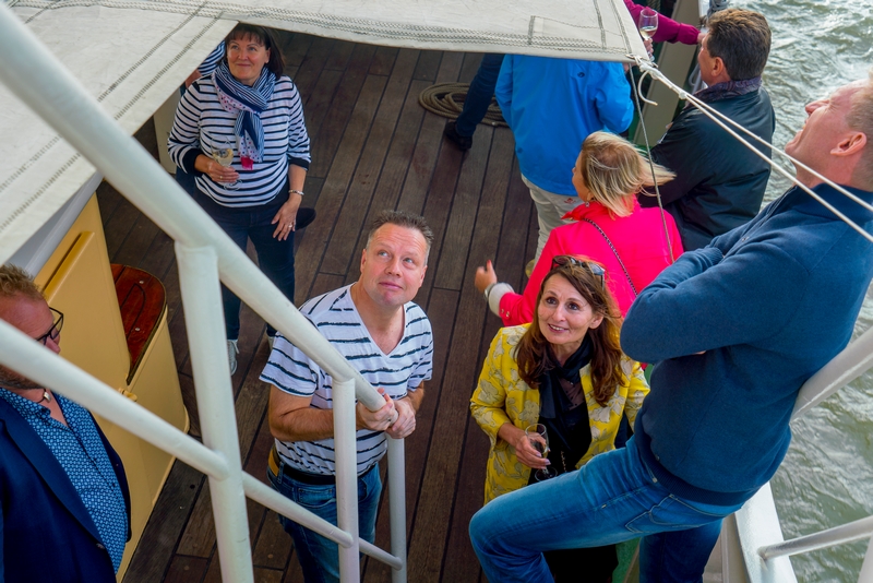 Wie auch im letzten Jahr lud die Handelsgilde auf vielfachen Wunsch zu einem fantastischen Segeltörn durch Hamburger Hafen und entlang der Elbvororte. Wir charterten für unser 12. Sommerfest den Dreimastschoner Mare Frisium unseres Mitglieds Hans-Christoph Klaiber von NordEvent. Das Schiff wurde 1916 unter niederländischer Flagge mit dem Namen Petronella zu Wasser gelassen, 1993 als Dreimastmastschoner neu hergerichtet und dient seit 1995 unter ihrem heutigen Namen als Passagiersegler. Die Mare Frisium ist 50 Meter lang, 6,7 Meter breit und weist mit einem Hauptmast von 31 Metern Länge eine Segelfläche von 634 Quadratmeter auf. Bei Rückkehr nach Hamburg haben wir die Segel gesetzt und sind bis an die Elbphilharmonie gesegelt. Ein tolles Erlebnis bei leckerem Essen, gutem Wein, einer sehr herzlichen und gemütlichen Atmosphäre an Bord mit viel Spaß, Gesang und Kommunikation im Gildekreis.