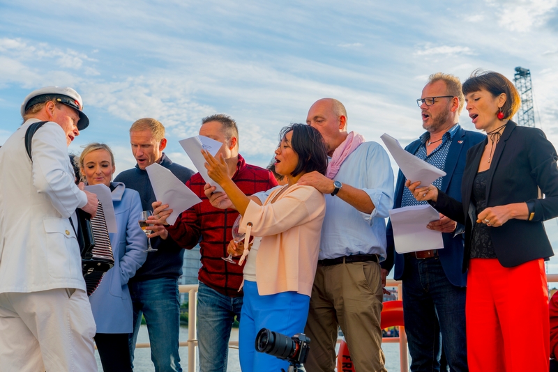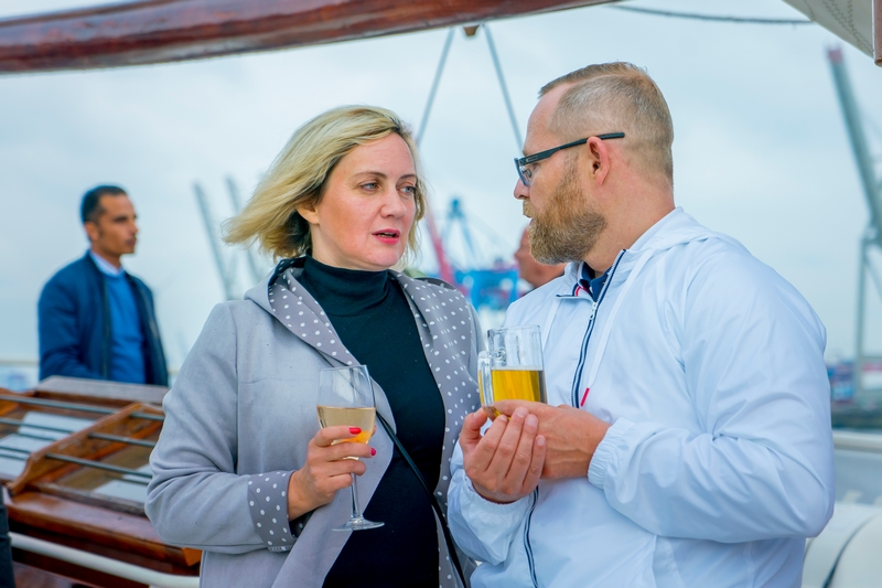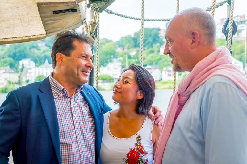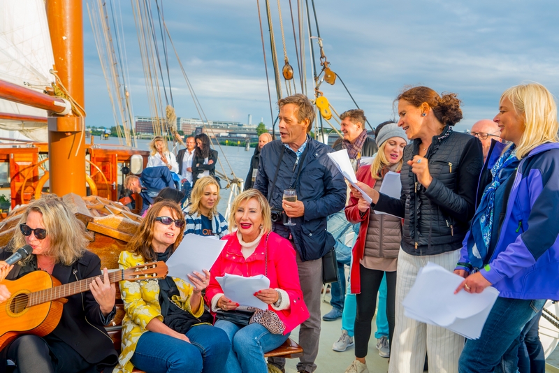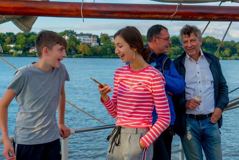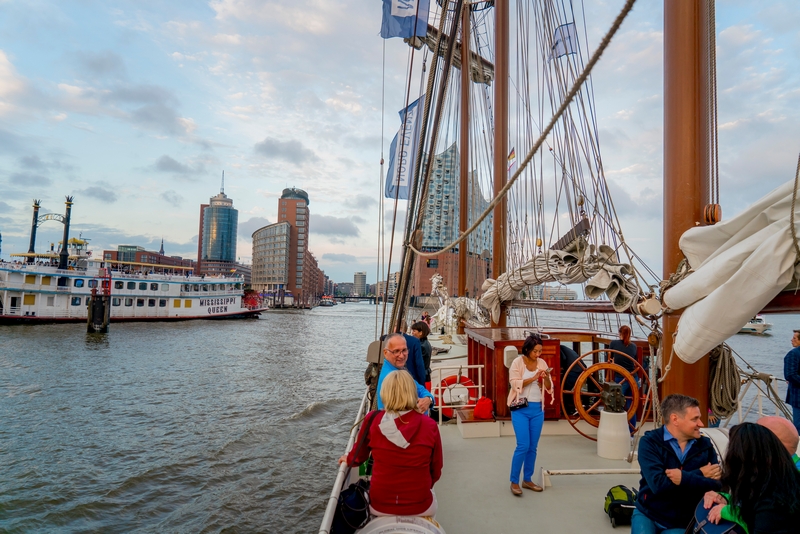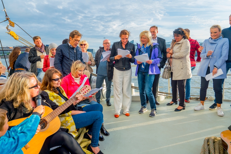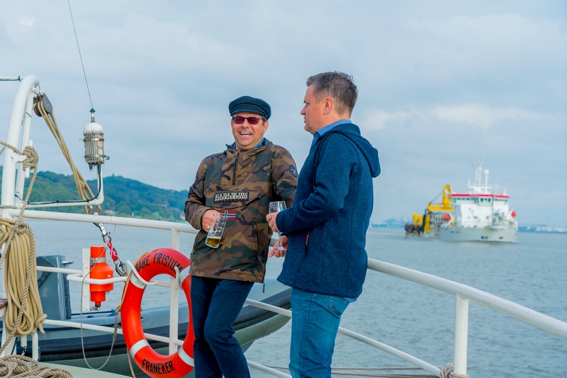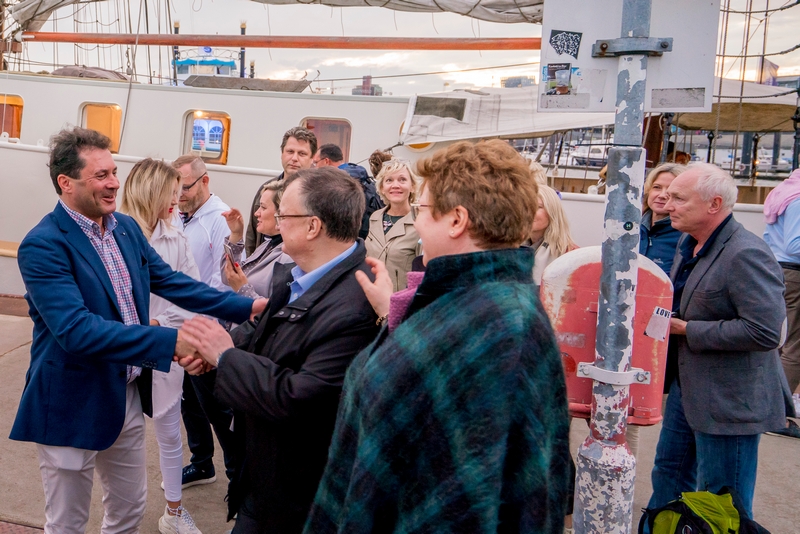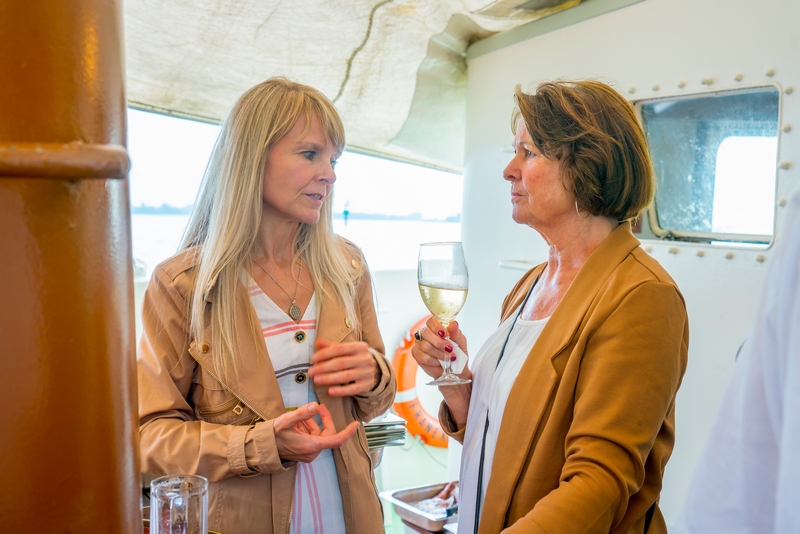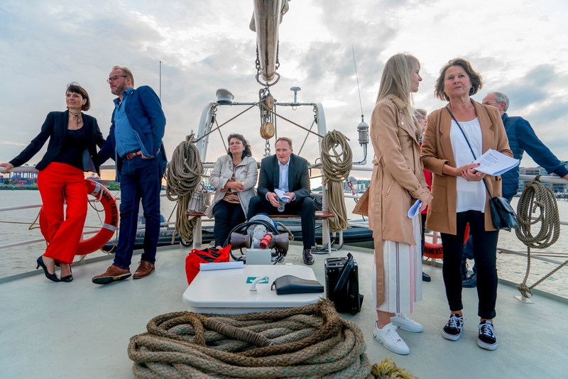 Wie auch im letzten Jahr lud die Handelsgilde auf vielfachen Wunsch zu einem fantastischen Segeltörn durch Hamburger Hafen und entlang der Elbvororte. Wir charterten für unser 12. Sommerfest den Dreimastschoner Mare Frisium unseres Mitglieds Hans-Christoph Klaiber von NordEvent. Das Schiff wurde 1916 unter niederländischer Flagge mit dem Namen Petronella zu Wasser gelassen, 1993 als Dreimastmastschoner neu hergerichtet und dient seit 1995 unter ihrem heutigen Namen als Passagiersegler. Die Mare Frisium ist 50 Meter lang, 6,7 Meter breit und weist mit einem Hauptmast von 31 Metern Länge eine Segelfläche von 634 Quadratmeter auf. Bei Rückkehr nach Hamburg haben wir die Segel gesetzt und sind bis an die Elbphilharmonie gesegelt. Ein tolles Erlebnis bei leckerem Essen, gutem Wein, einer sehr herzlichen und gemütlichen Atmosphäre an Bord mit viel Spaß, Gesang und Kommunikation im Gildekreis.
