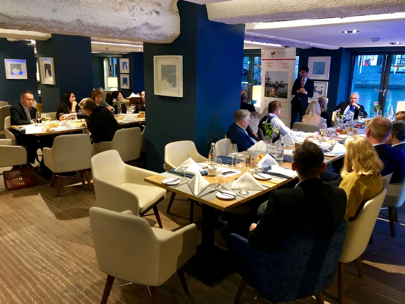 Der Gildevorstand lud seine Mitglieder zur 13. Jahresvollversammlung traditionell in den Old Commercial Room. Die Atmosphäre war wie immer freundschaftlich, der Austausch und das Networking sehr produktiv. Die spannende Keynote von Edda Wolf, Bereichsleiterin GUS/Südosteuropa bei der Germany Trade & Invest, zeigte die vielen Potenziale auf, die der russische Markt aktuell zu bieten hat, wies aber auch auf Hindernisse hin, die durch Sanktionen und Importsubstitution entstehen.