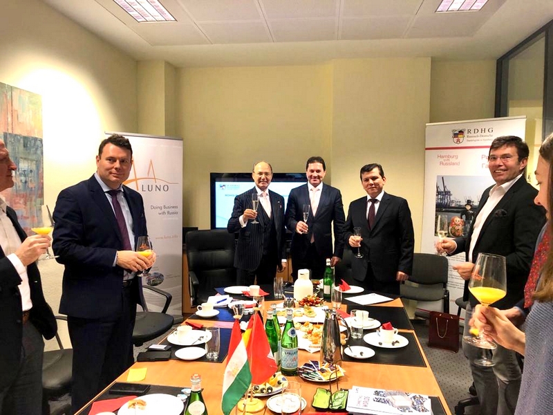 Beim zweiten RDHG-Botschafterdialog entlang der Seidenstraße präsentierte S.E. Sohibnazar Gayratsho sein Land Tadschikistan. Er zeigte dabei die Erfolge aus den umfassenden Reformen der letzten beiden Jahre ebenso auf wie die Entwicklungen zahlreicher Leuchtturm-Projekte, allen voran im Bereich Energiegewinnung durch Wasserkraft. Tadschikistan positioniert sich zunehmend als ein aufstrebendes „Grünes Land“ mit enormen alternativen Energieressourcen und einer traumhaften Landschaft. Über 90% der Fläche sind Gebirge. Green Energy und Green Tourism sind zwei Treiber, mit denen künftig Investoren und Erlebnistouristen ins Land geholt werden sollen. Die Weltbank hat Tadschikistan enorme wirtschaftspolitische Fortschritte bescheinigt und im aktuellen „Doing-Business-Report“ in die Liste der Top 20-Reformer aufgenommen. Nach Ansicht der Weltbank-Experten konnte das Land seine Leistung bei drei wichtigen Indikatoren verbessern: Registrierung von Unternehmen, Zugang zu Krediten und Internationaler Handel. Umfangreiche öffentliche Investitionen ermöglichten Tadschikistan zudem 2018 ein kräftiges Wachstum von 7,3 Prozent. Ein herzliches Dankeschön an den Botschafter und an den tadschikischen Honorarkonsul in Hamburg, Kourosh Pourkian, für die Zeit und Möglichkeit des sehr interessanten und nützlichen Austausches im Hause der LUNO-Gruppe.
