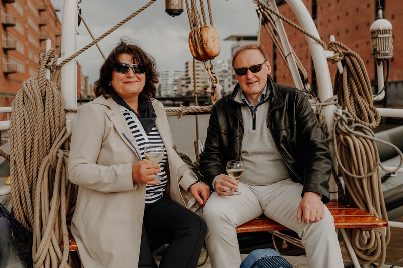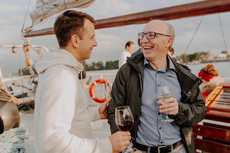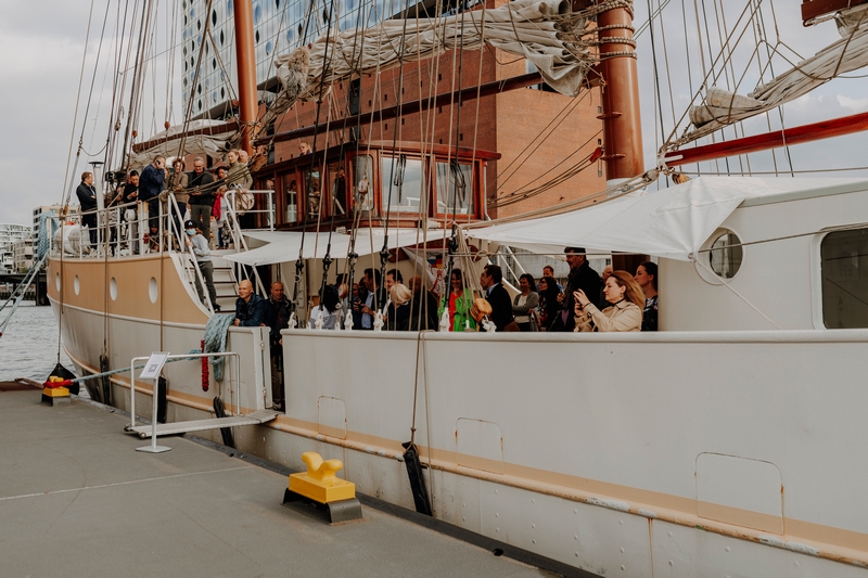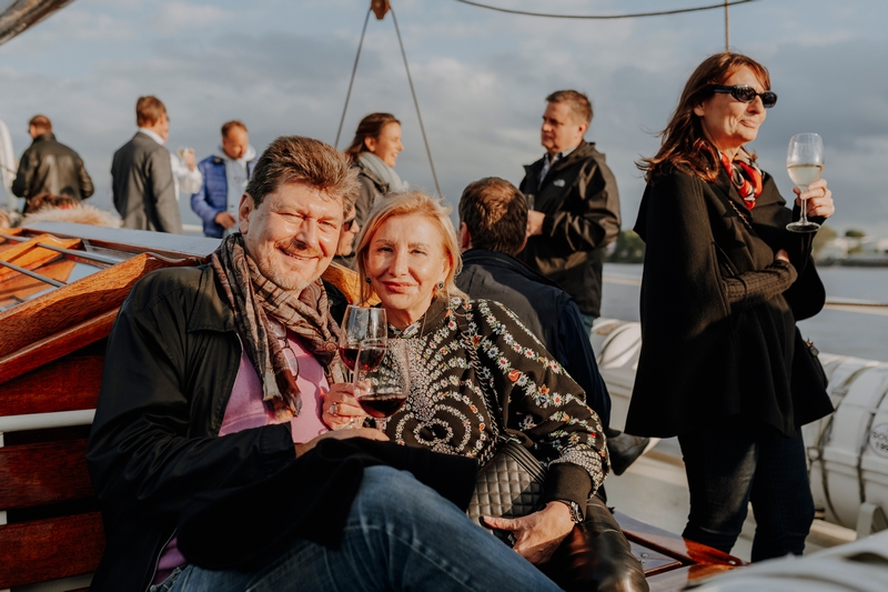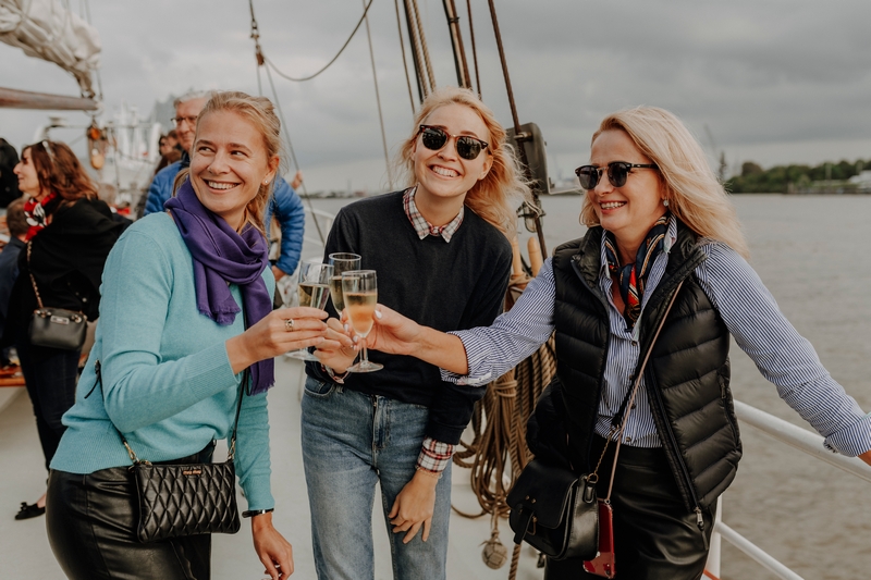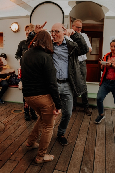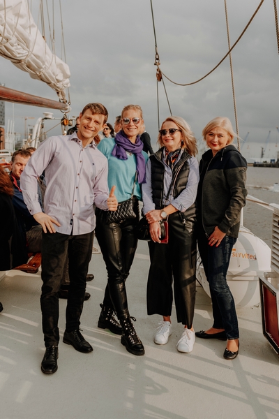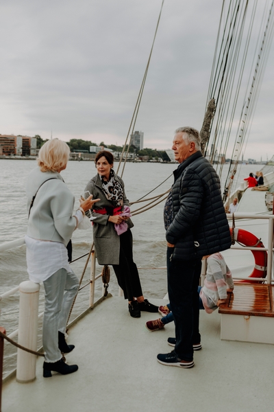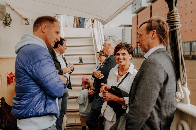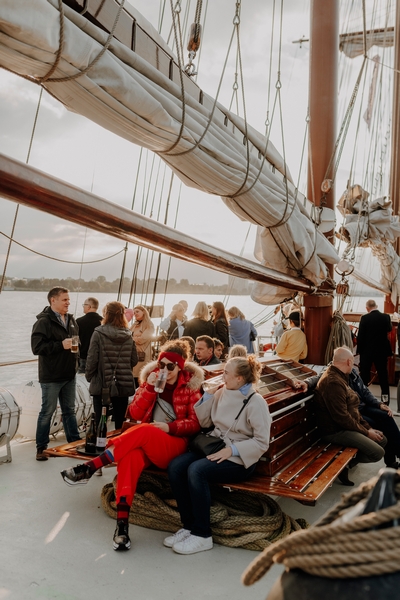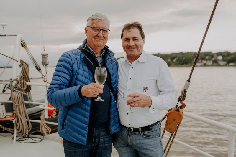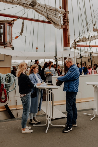 Alle guten Dinge sind drei: Wie auch in 2018 und 2019 organisierte die Handelsgilde auf vielfachen Wunsch den Segeltörn 3.0 und charterte für das Sommerfest 2021 den Dreimastschoner Mare Frisium. Das 50 Meter lange und 6,7m breite Schiff wurde 1916 unter niederländischer Flagge zu Wasser gelassen, 1993 als Dreimastmastschoner für Passagiere mit einer Segelfläche von 634 Quadratmeter neu hergerichtet. Das Schiff war bei tollem Wetter ausgebucht und so konnten 90 Teilnehmer einen fantastischen Nachmittag und Abend verbringen.