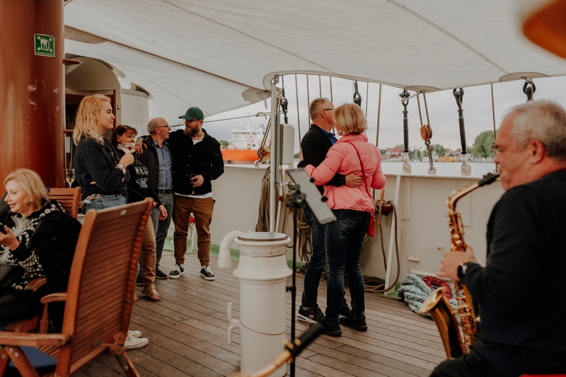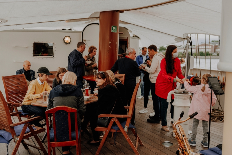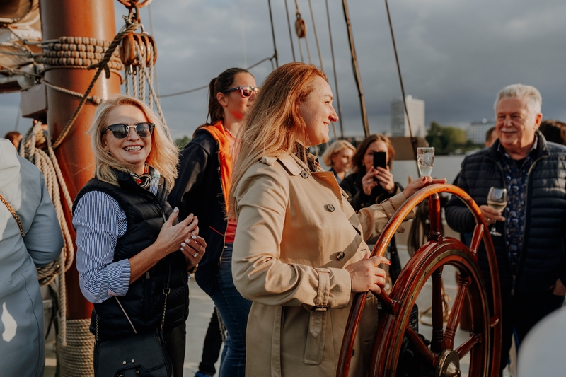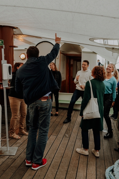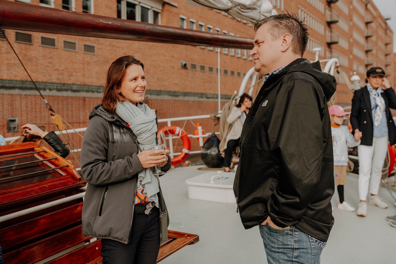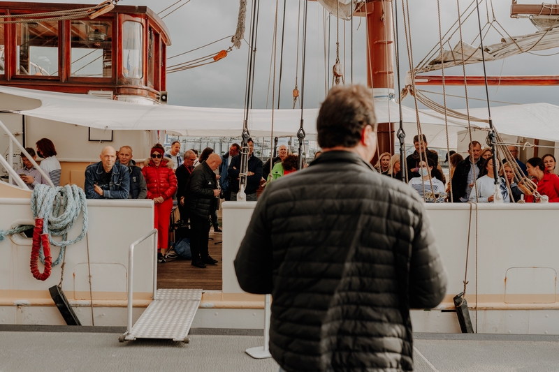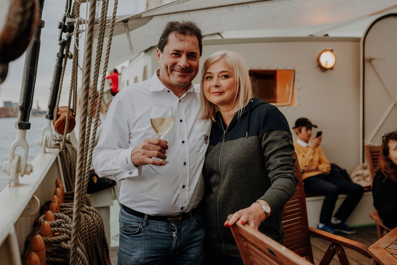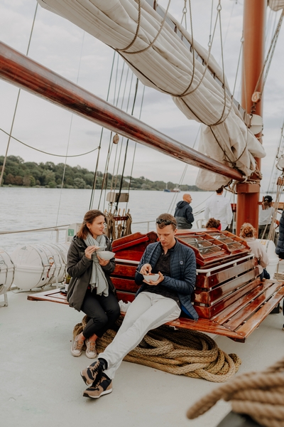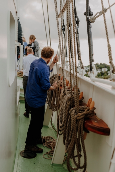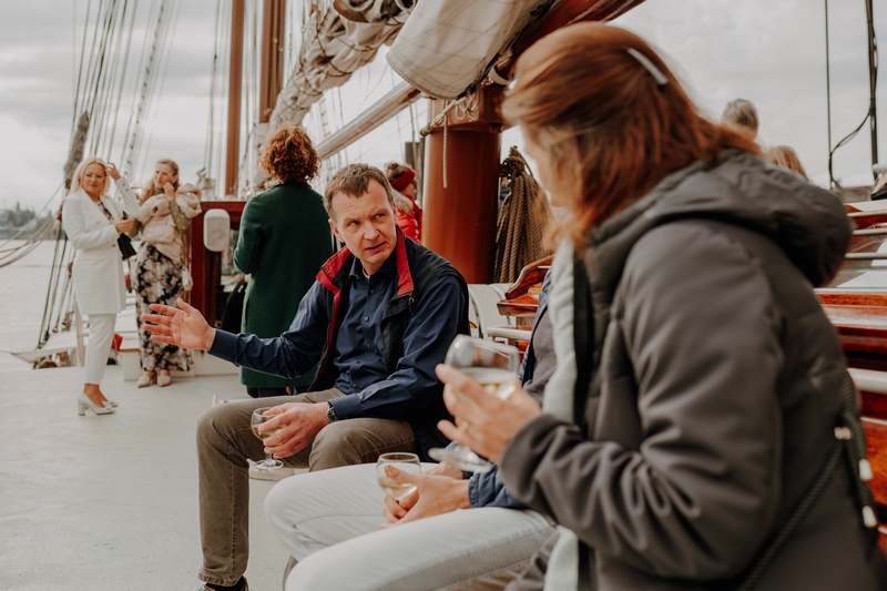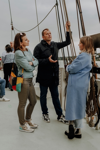 Alle guten Dinge sind drei: Wie auch in 2018 und 2019 organisierte die Handelsgilde auf vielfachen Wunsch den Segeltörn 3.0 und charterte für das Sommerfest 2021 den Dreimastschoner Mare Frisium. Das 50 Meter lange und 6,7m breite Schiff wurde 1916 unter niederländischer Flagge zu Wasser gelassen, 1993 als Dreimastmastschoner für Passagiere mit einer Segelfläche von 634 Quadratmeter neu hergerichtet. Das Schiff war bei tollem Wetter ausgebucht und so konnten 90 Teilnehmer einen fantastischen Nachmittag und Abend verbringen.