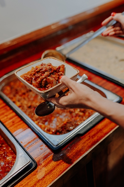 Während des offiziellen Teils wird Vorspeise und Suppe gereicht, während der Aussprache folgt der Hauptgang.